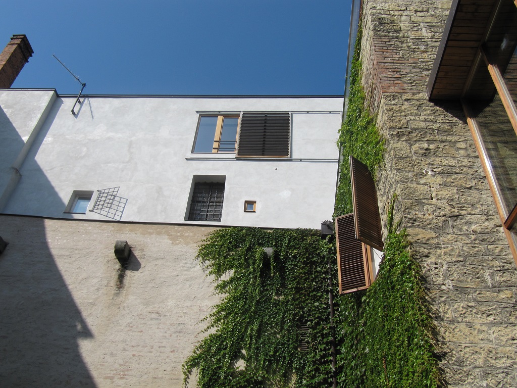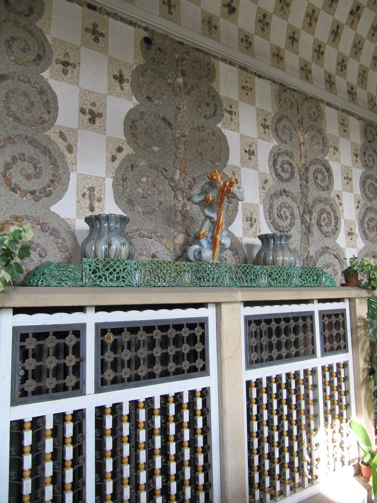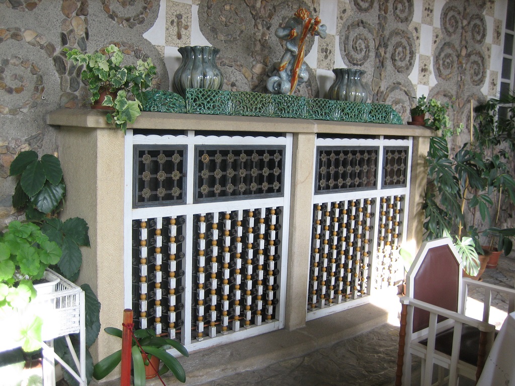 Na nádvoří zámku s novodobými konstrukcemi pro popínavé rostliny se dochovala i původní nástěnná svítidla architekta Dušana Jurkoviče.