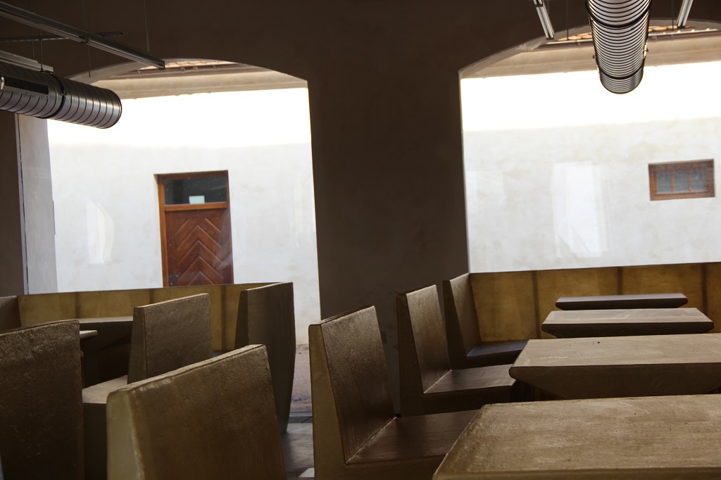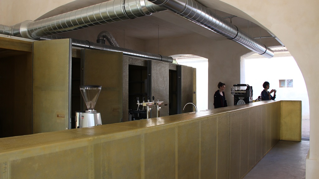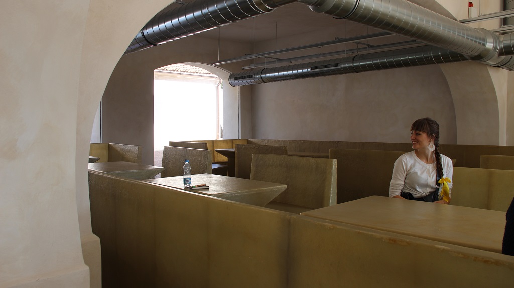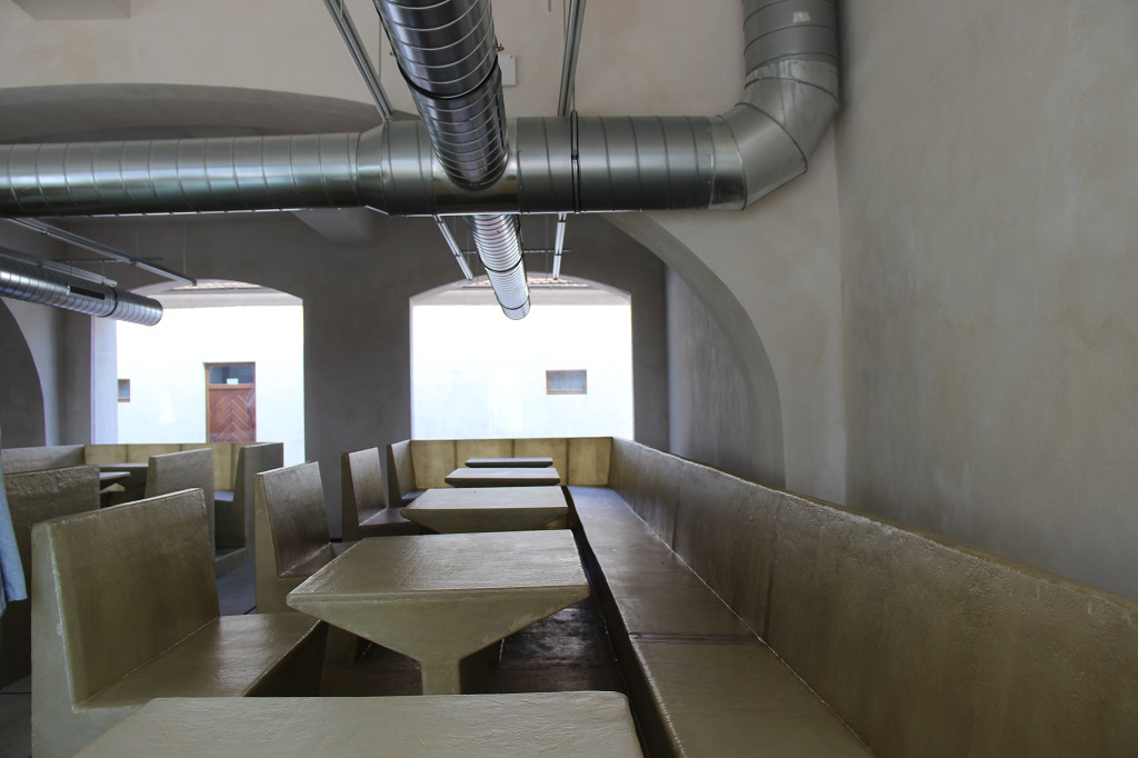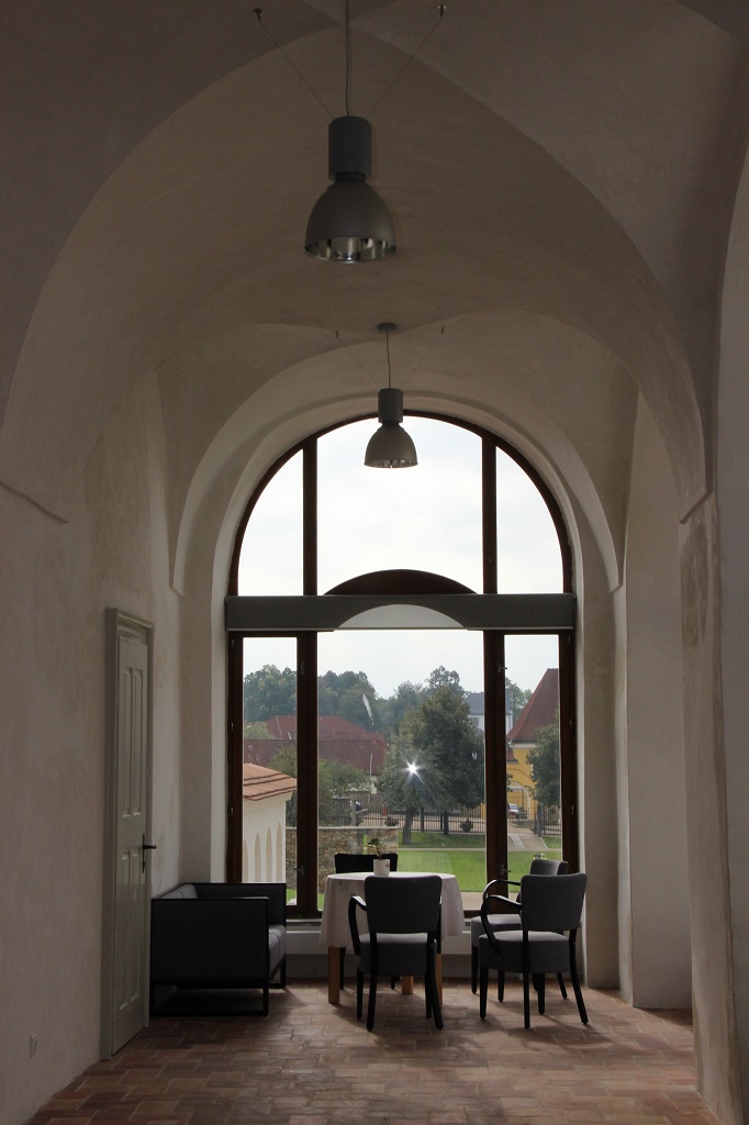 V komornější podobě je koncept uplatněn i v původní kočárovně, konvertované na budoucí kavárnu.