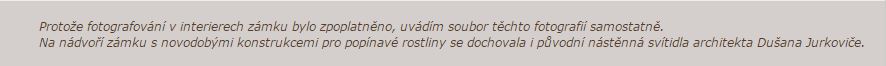 Protože fotografování v interierech zámku bylo zpoplatněno, uvádím soubor těchto fotografií samostatně.