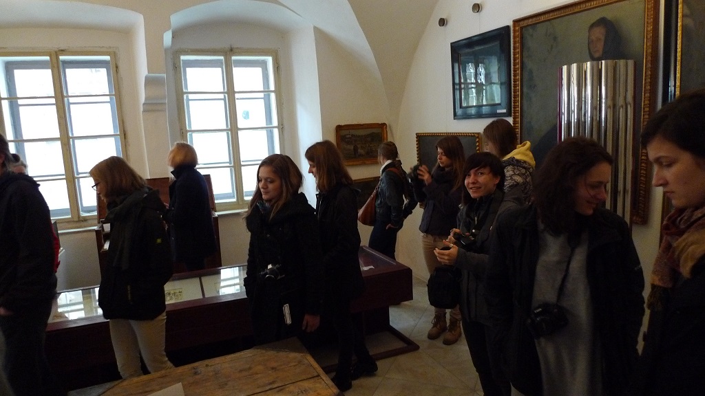 Jako hlavní cíl programu přišlo na řadu v pozdních odpoledních hodinách, což přednášející, kastelán a vedoucí správy zámku PhDr. Pavel Slavko upřímně uvítal a po úvodní přednášce uvedl prohlídku všech jeho prostor včetně depozit. Toto bylo již jeho třetí vystoupení v mojí výuce a tak se VŠUP vedle amerických, japonských, taiwanských, a anglických univerzit a organizací, vedle referátů na světových kongresech a působnosti na dalších VŠ v České republice stala VŠUP jeho častým působištěm.