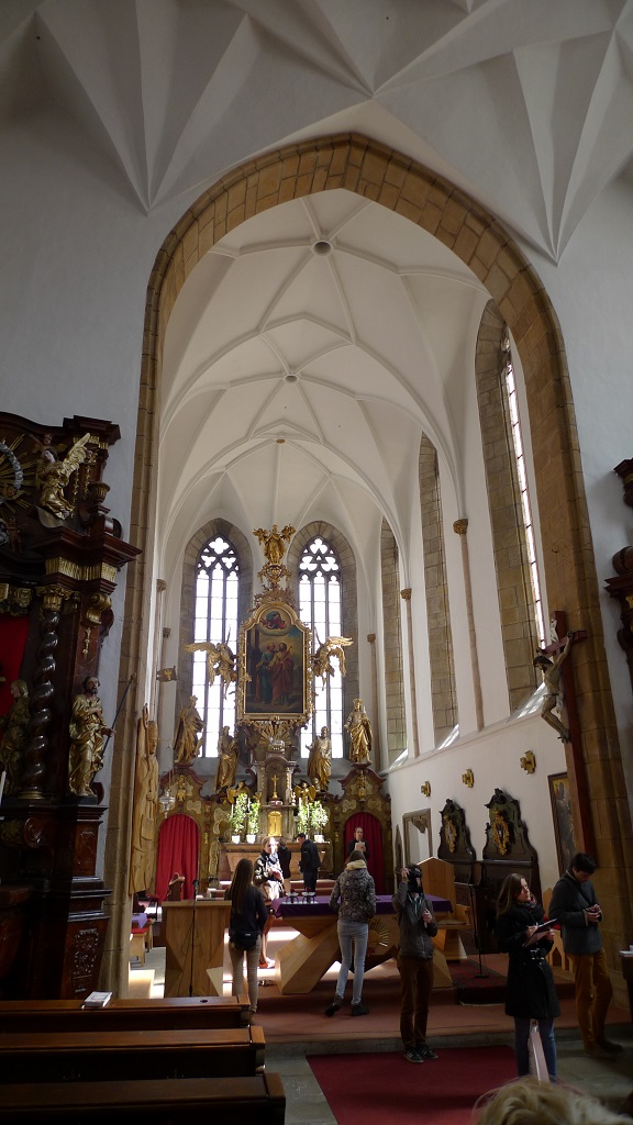 Kostel svatého Michala, nádherně posazený do městského jádra jako jeho dominanta. I když upoutá jeho exteriér, je množství hodnot za jeho portály překvapením. Samotný půdorys latinského kříže, vytvořený bočními kaplemi na presbyterium. Část prostoru s ukázkovou žebrovou křížovou klenbou a část plochostropá, která mylně působí jako pozdější dostavba. Detaily kamenické práce, hmatatelné stavební změny vývoje stavby. Vstup tvorby Richarda Laudy v čestném místě lodi, se sakrální tématikou, uchopenou ze zcela jiného pohledu autora, opírajíc se i o dobu svého vzniku.