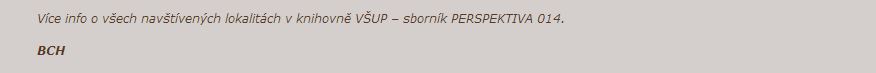 Více info o všech navštívených lokalitách v knihovně VŠUP – sborník PERSPEKTIVA 014.