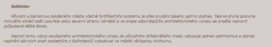 Naproti tomu vstup současného architektonického výrazu do původního středověkého hradu vzbuzuje jednak optimismus a jednak naplnění dávných snah posledního z Rožmberků vybudovat ve městě věhlasnou knihovnu.
