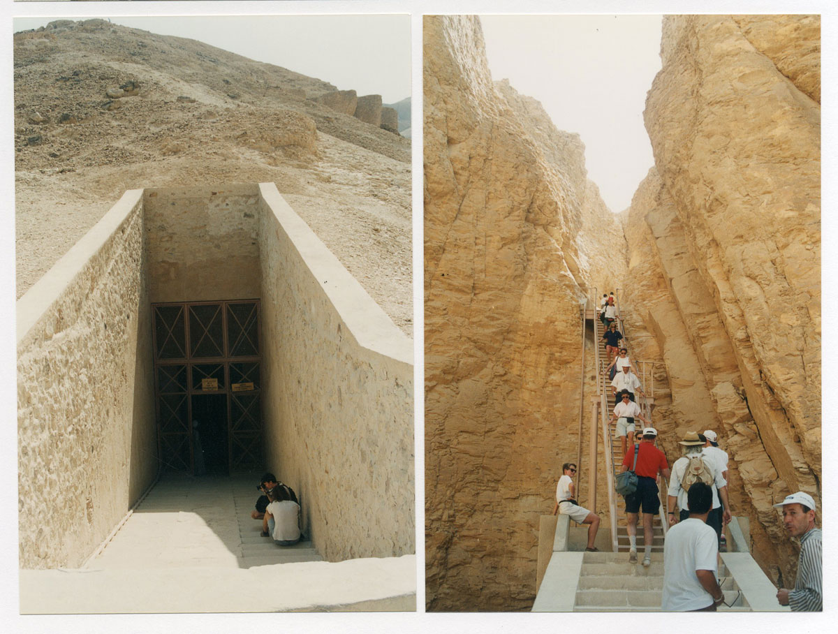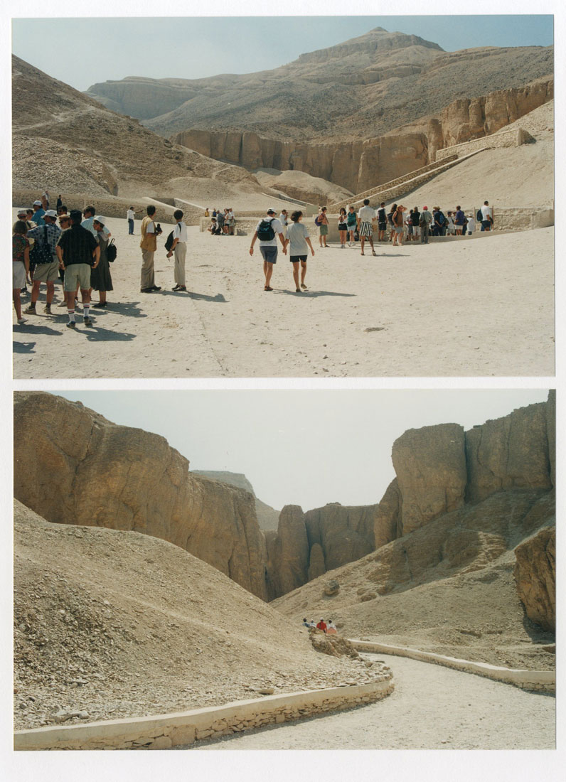 Jak bylo bezpečno v Itálii, tak mnohá nebezpečí nás naštěstí doslova o vlas minula v Egyptě. Samotný masakr před chrámem Hatšepsovet se udál několik měsíců po naší návštěvě na tom samém místě. Jeho průběh – kdy jistě nikdo z okolních lidí vlastně nevěděl, co se děje, si dovedu bohužel živě představit. Celou tu širokou pláň, kde v dálce stojí drůza zaparkovaných turistických autobusů, pláň, ze které není úniku. Celá ta skupina obětí a jejich vrahů musela být vnímána jako zrnko v písku tohoto bezbřehého prostoru, ztrácejícího se v prachu pouště.