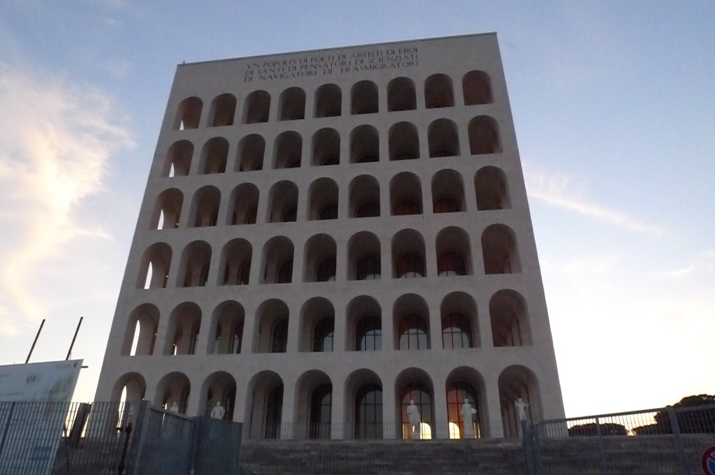 Palazzo della Civilizazione - budova pro expozice – „hranaté koloseum“ – stěžejní budova satelitu EUR – architekt Querini -