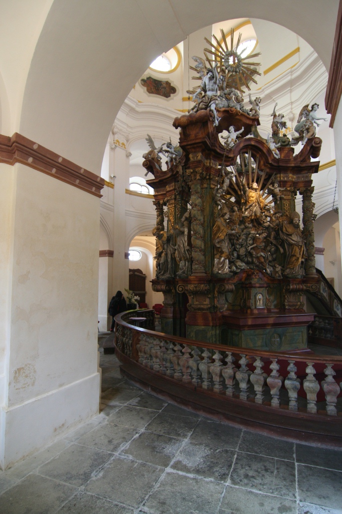 kostel sv. Víta – pozdně barokní, na oválném půdoryse se středovým oltářem, architekt Auguston - exterier