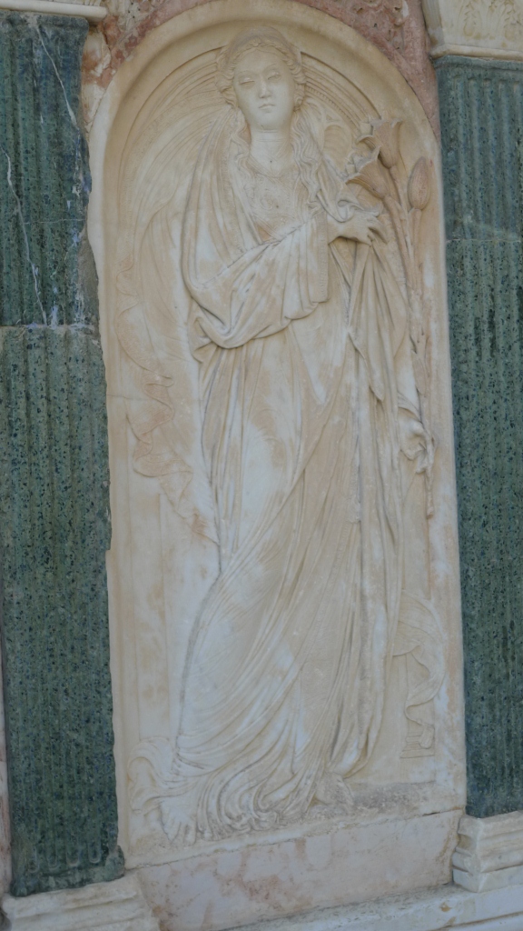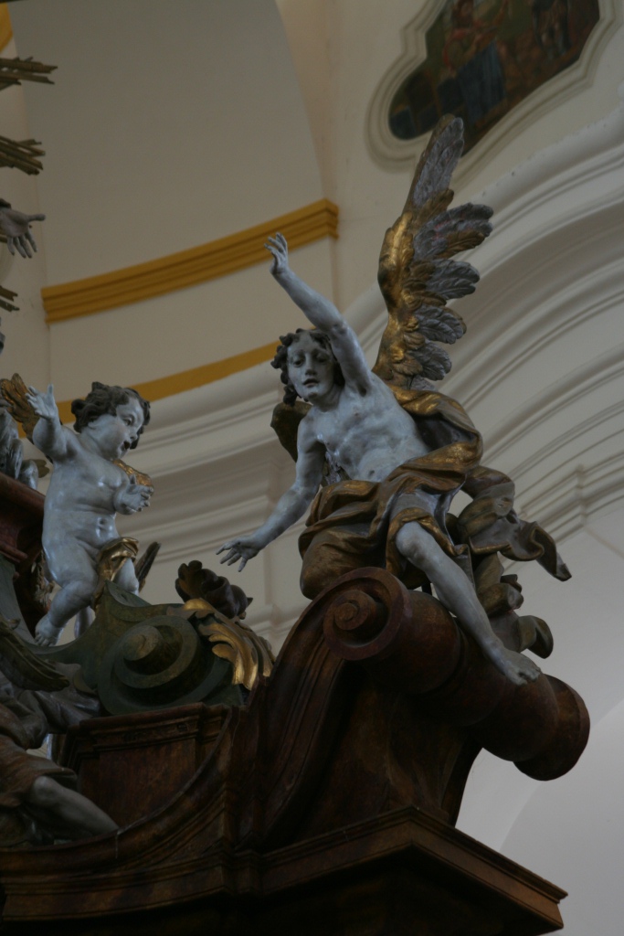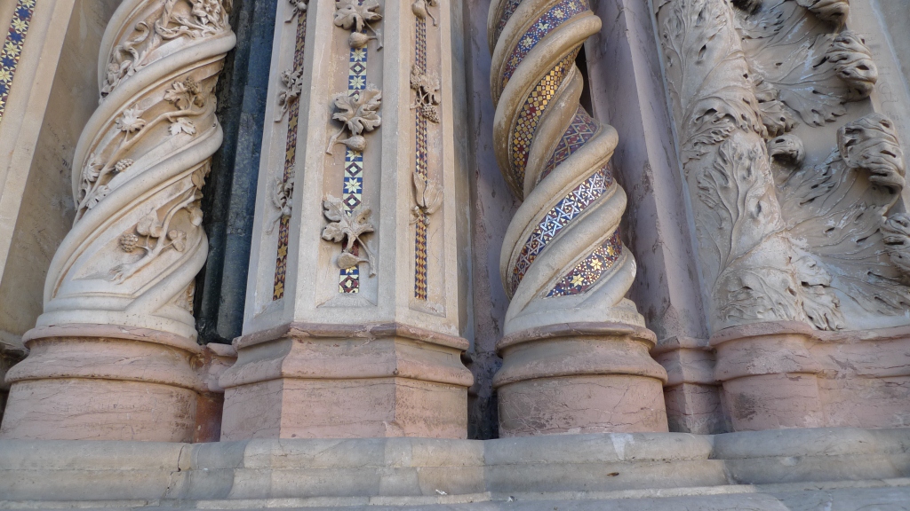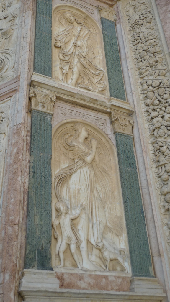 Katedrála –Prstenu Panny Marie – nedokončené obklady, venkovní kazatelna pro prostor náměstí. Socha sedícího papeže – exteriér