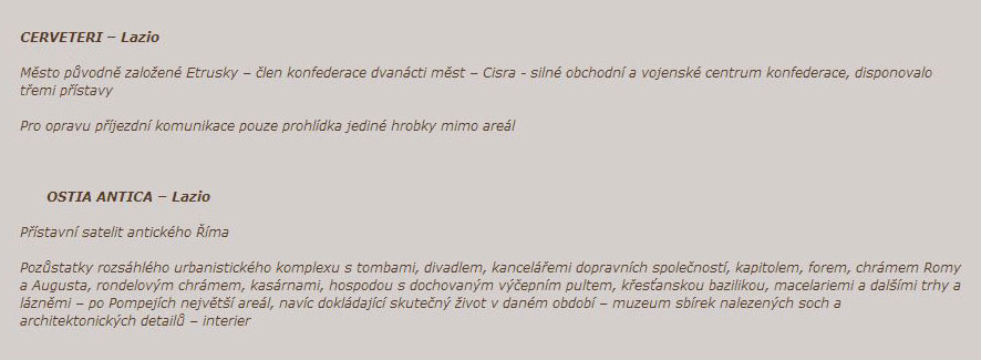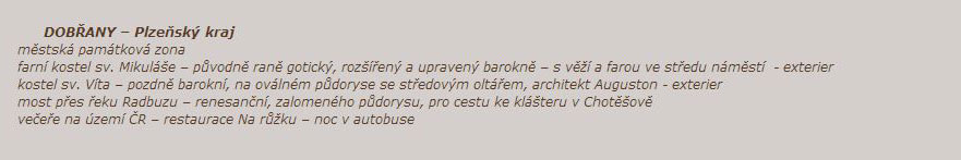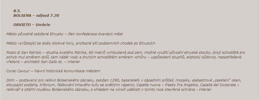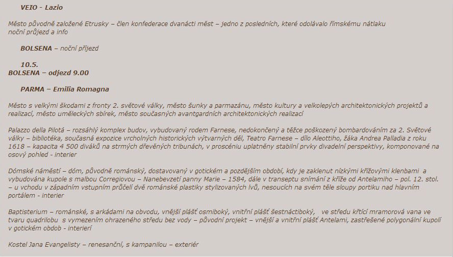 Itinerář cesty se stručným komentářem k jednotlivým lokalitám, který zároveň obdrží všichni studenti