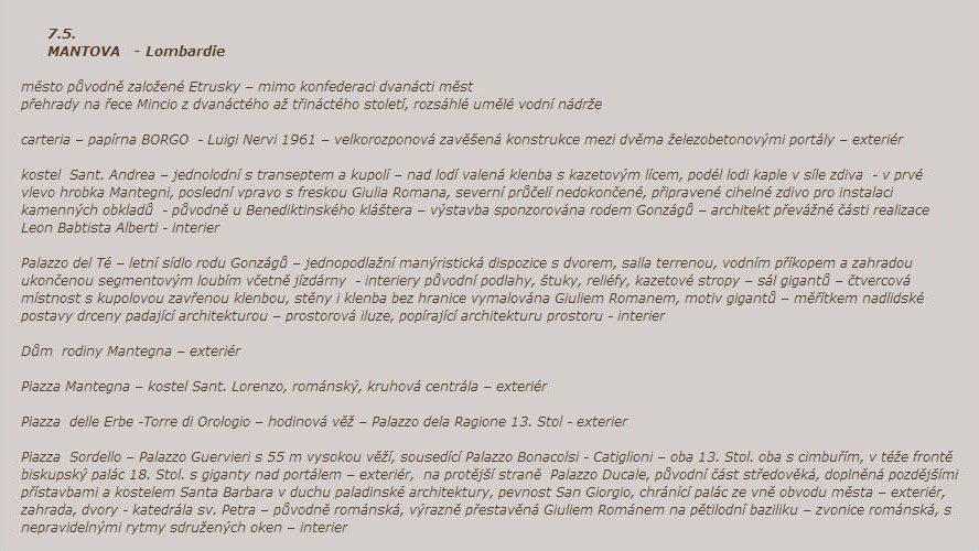 V příloze předávám zprávu o absolutoriu exkurze katedry architektury do Itálie, která se realizovala ve dnech 6. až 11. 5. 2014