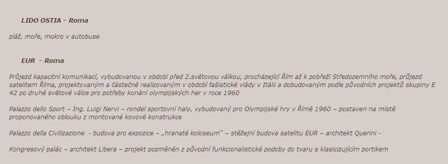 Gli architekti e il fascismo – komentář ze stejnojmenné knihy po prohlídce satelitu EUR, zapůjčeno z Ufficio Culturale della Ambassiata Italiana Praga