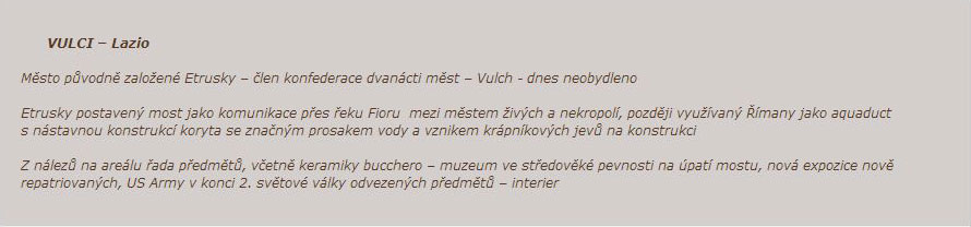 Město původně založené Etrusky – člen konfederace dvanácti měst – Vulch - dnes neobydleno