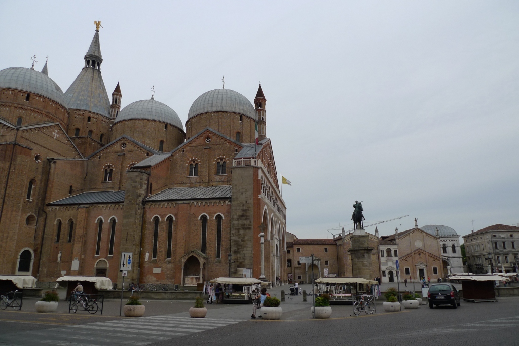 Kostel Sant. Antonio – uloženy ostatky Sv. Antonína Paduánského, chrámový prostor zaklenut řadou kupolí, nad křížením lodí kupole s kuželovou střechou, u východního průčelí dvě štíhlé věže – v interieru kaple s Donatellovým náhrobkem a s perspektivními mramorovými reliéfy – 1449 – reliéfy Sansovino a Lombardiové, katedrální systém kaplí v prostoru ta oltářem, rajský dvůr a zákristie s velkoplošnými intarziemi, ve chrámu probíhal obřad svěcení biskupa s varhany, trubkami a chorovým zpěvem s obrovskou návštěvností včetně církevních řádů a poutníků – nezapomenutelný duchovní zážitek – interier