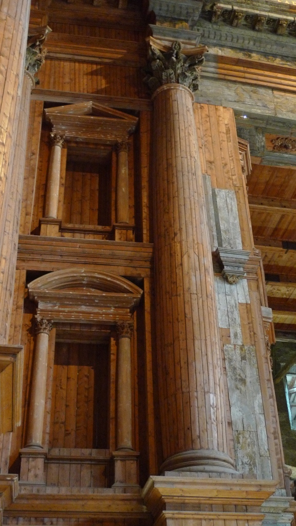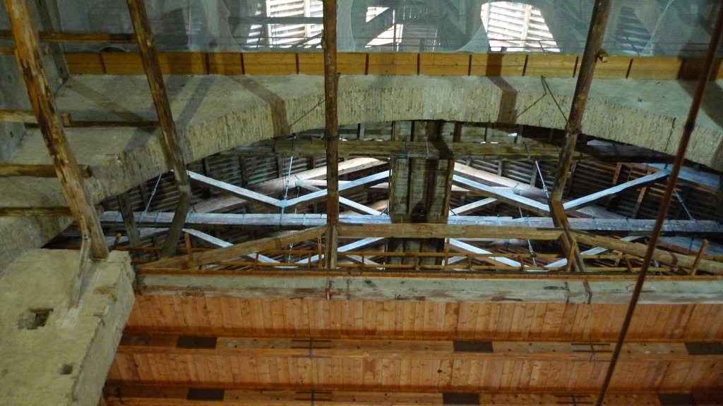 kostel San Flaviano, patrový, každé z podlaží opačná orientace rituálu – východ- západ – info