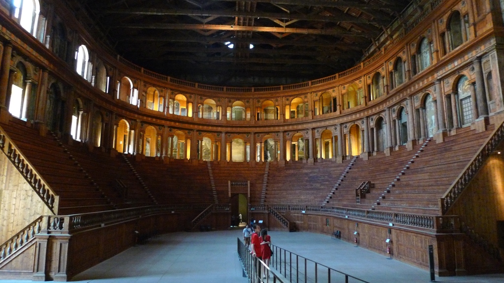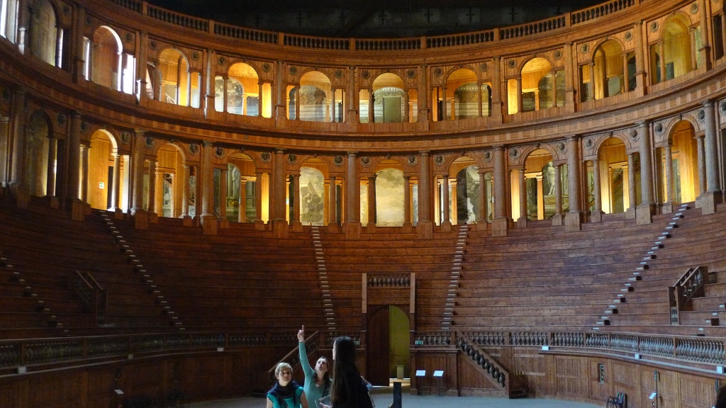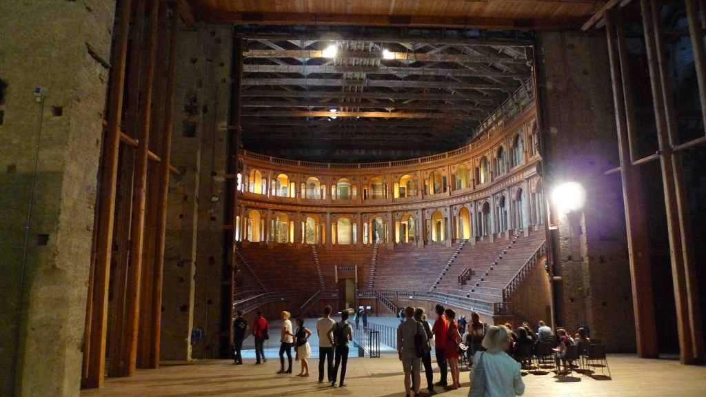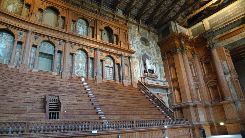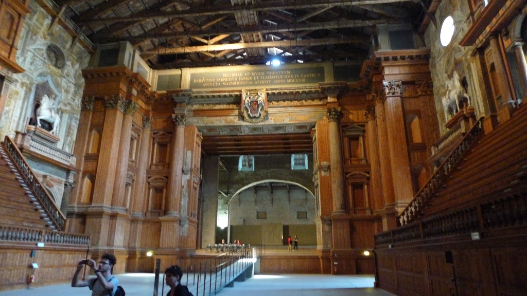 Palazzo della Pilotá – rozsáhlý komplex budov, vybudovaný rodem Farnese, nedokončený a těžce poškozený bombardováním za 2. Světové války – bibliotéka, současná expozice vrcholných historických výtvarných děl, Teatro Farnese – dílo Aleottiho, žáka Andrea Palladia z roku 1618 – kapacita 4 500 diváků na strmých dřevěných tribunách, v proscéniu uplatněny stabilní prvky divadelní perspektivy, komponované na osový pohled - interier