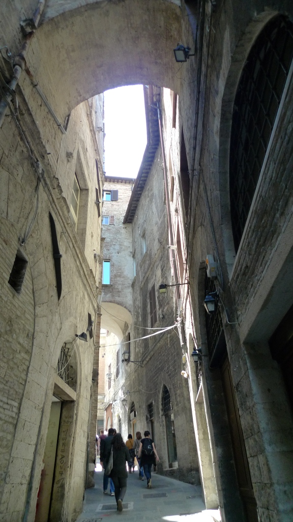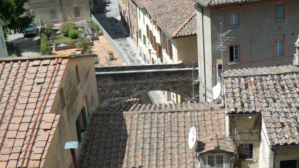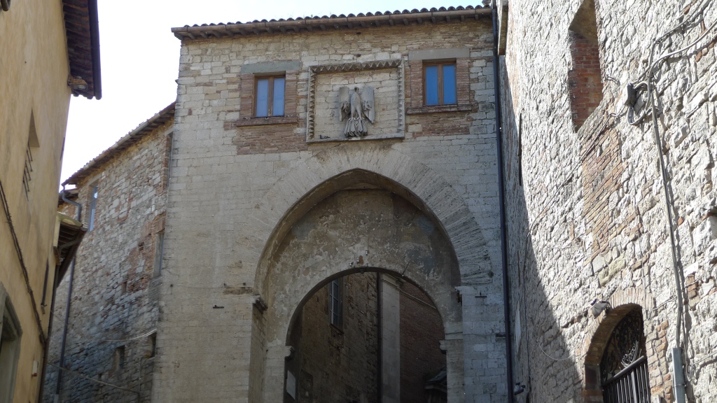 průchod etruskou branou k Palazzo Capitani, Univerzita – exteriér –