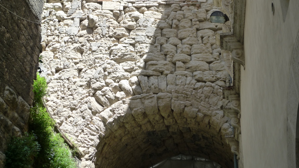 Arco Augusto – původně brána etruského opevnění – kvádry travertinu objemem až 4 m3