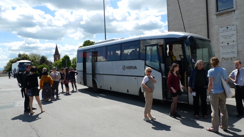 Během cesty autobusem probíhal výklad, předem namluvené komentáře, komentáře dalších účastníků cesty i Teatro lirico italiano – ukázky z italských oper archaických i novějších tvůrčích období.