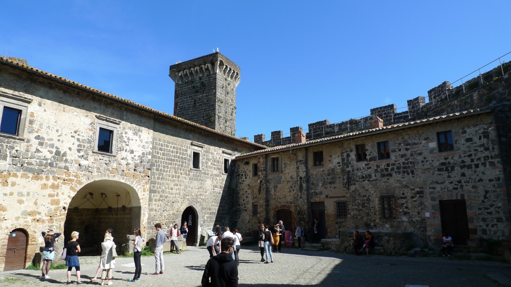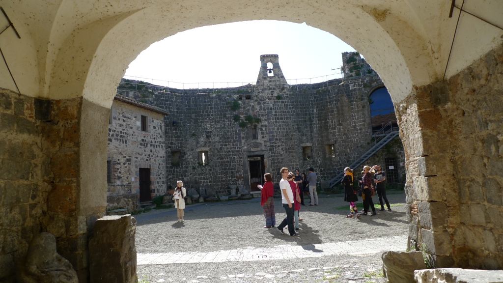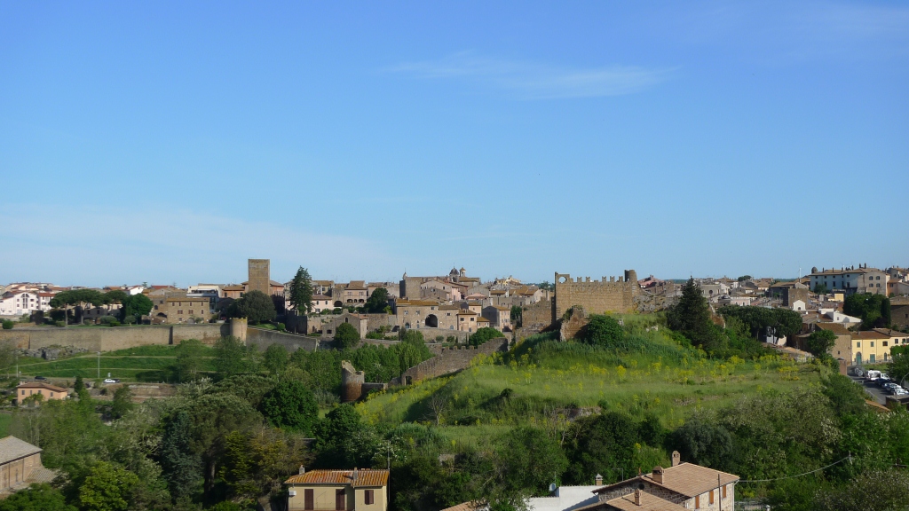 město hrazené dodnes dochovaným opevněním, jedním z nejdochovanějších v Itálii, hradby z tufového kamene s branami, vyrůstající ze skály – město samotné značně proměněné