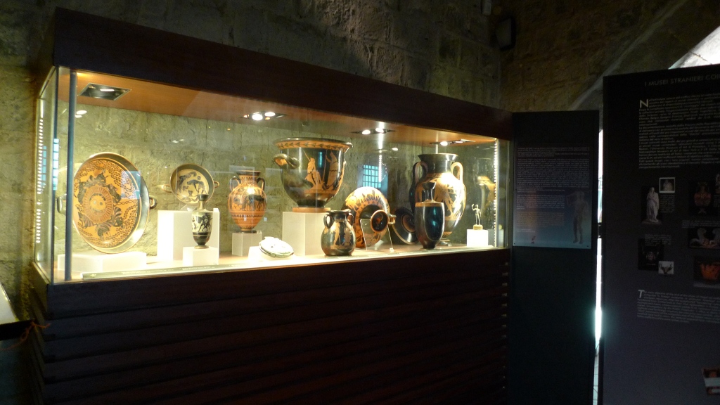 Z nálezů na areálu řada předmětů, včetně keramiky bucchero – muzeum ve středověké pevnosti na úpatí mostu, nová expozice nově repatriovaných, US Army v konci 2. světové války odvezených předmětů – interier