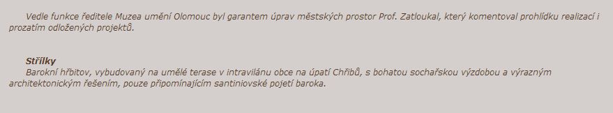 Vedle funkce ředitele Muzea umění Olomouc byl garantem úprav městských prostor Prof. Zatloukal, který komentoval prohlídku realizací i prozatím odložených projektů.