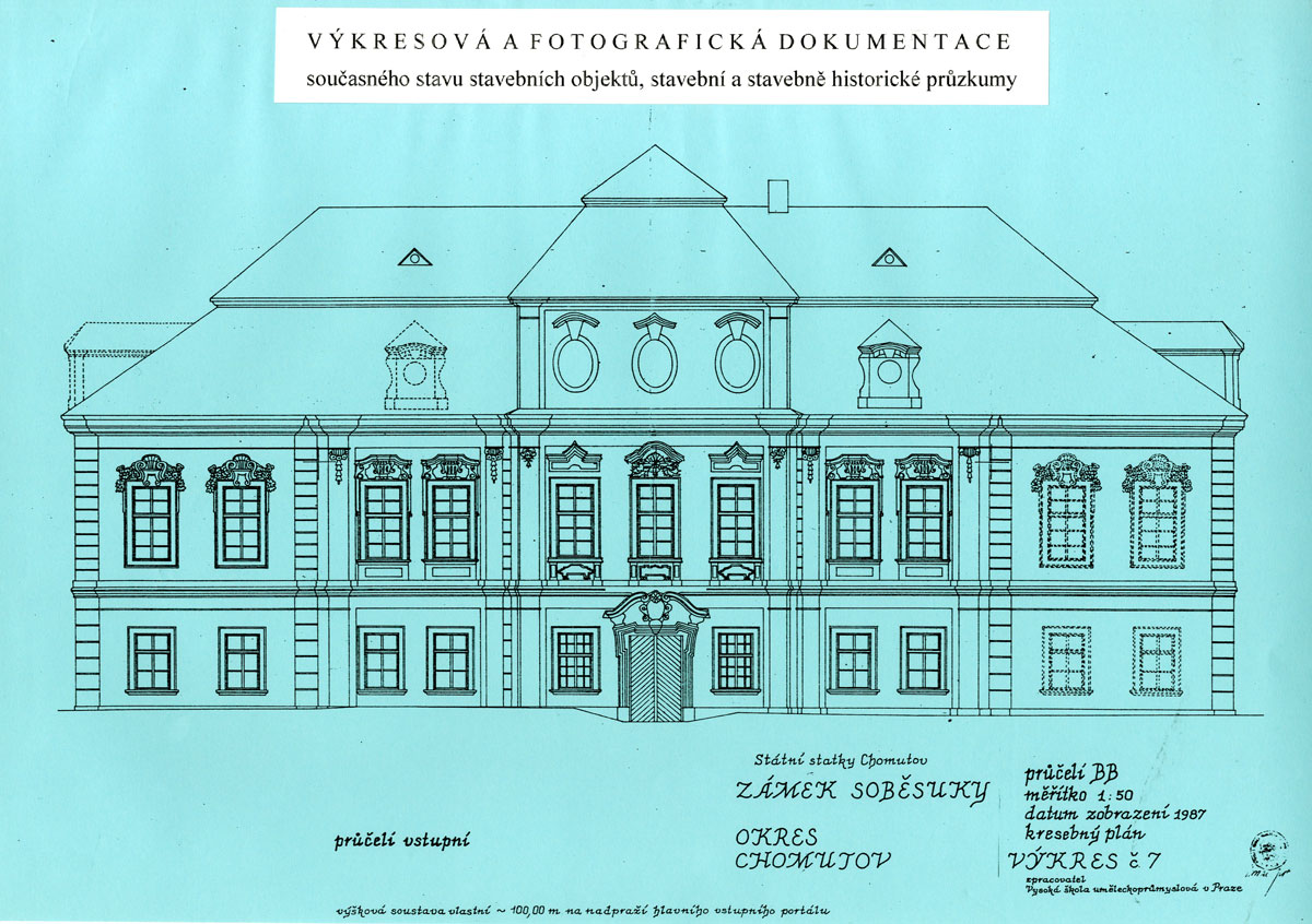 Pozdně barokní zámek pod hrází Nechranické vodní nádrže na Ohři byl mimo kostela jediným dochovaným objektem bývalé, tehdy již vysídlené vesnice o původně cca šesti stech obyvatelích. Zámecká dispozice patrně navazovala i na přilehlý osově situovaný park. Zcela jinou krajinnou úlohu mělo zřejmě tehdy i původní řečiště Ohře. Vybydlený a neudržovaný zámek sloužil jako ubytovna brigádníků – česáčů chmele. V době jejich nepřítomnosti, když byli na chmelnici, se vnitřní dispozice zcela zřítila. Majitel - Státní statky Chomutov - objednal proto dokumentaci současného stavu včetně hypotézy původních zřícených konstrukcí, kterou bylo tehdy možné snadno doplnit. K rekonstrukci však nedošlo a výkresová a fotografická dokumentace je po vydání demoličního výměru a jeho naplnění jediným archivním materiálem, připomínajícím původní hodnotu této stavby, jejíž osud se zcela zbytečně připojil k mnoha zničeným hodnotám v regionu..