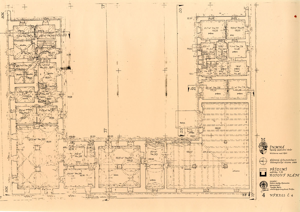 Bývalý poplužní dvůr u Klášterce nad Ohří byl v majetku Státních statků Chomutov, které se svojí objednávkou na dokumentaci areálu obrátily na VŠUP. Velkorysá dispozice včetně sloupové síně klenuté stáje se stala předmětem i následného stavebně historického průzkumu, který mimo barokních a pozdějších staveb objevil i středověké jádro zřejmě původně hrazené stavby. Dnes, po restituci, slouží dvůr svému původnímu účelu zemědělské výroby. Tento jedinečný areál patřil k nejzajímavějším zakázkám této oblasti činnosti a to jak v poloze dokumentační, tak i badatelské.