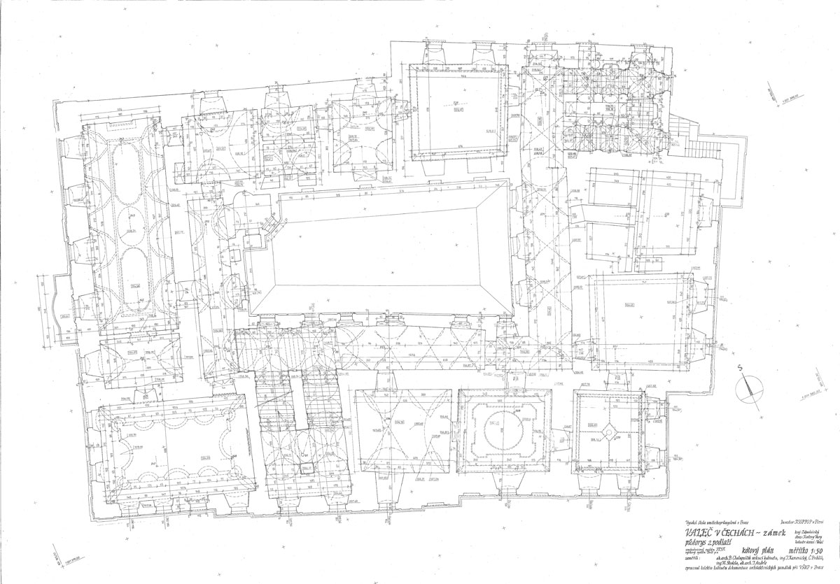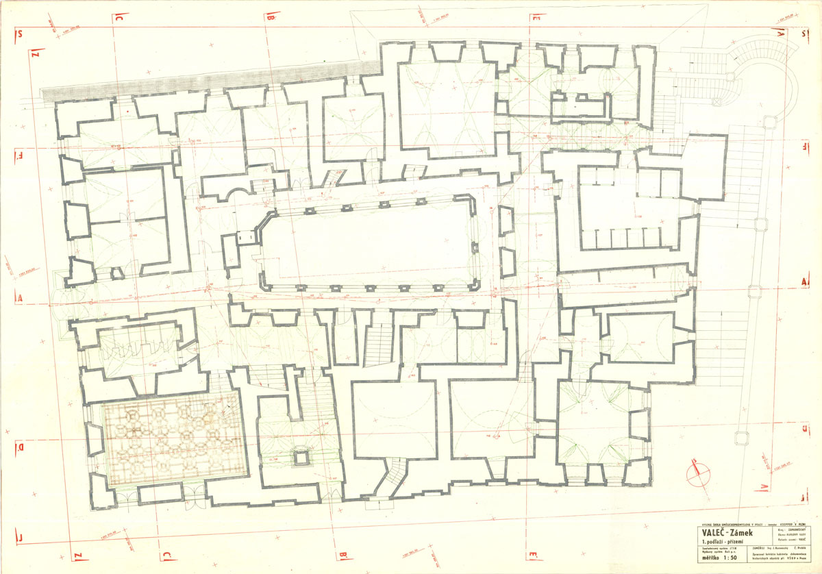 Stejně jako řada dalších objektů byla původně pouze pilotní dokumentace typického podlaží zpracovávána Kabinetem dokumentace VŠUP pro tehdy připravovaný sborník Umělecké památky Čech, vydávaný Českou akademií věd. Práce však přerostla v objednávku kompletní dokumentace objektu i rozlehlého zámeckého parku s řadou výrazných architektur a plastik Braunovy dílny. Práci vedl docent Miroslav Chalupníček, který však 6.4.1976 zemřel . Téhož dne zámek vyhořel do základů a rozpracovanost plánového elaborátu se stala cennou archiválií. Pod vedením BCH byl elaborát dokončen a na základě změřených údajů byly doplněny již neexistující partie hlavního objektu zámku. Dále pak byly doměřeny a kresebně dokumentovány zahradní architektury včetně amfiteátrů, vodních kaskád se skulpturami velryb, propylejí, obelisků, kašen, bazénů a rozmístění plastik v rozlehlém areálu Objednavatelem dokumentace byl tehdejší Krajský ústav státní památkové péče a ochrany přírody v Plzni.
