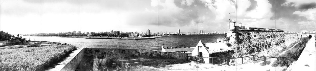 Rozlehlý bazén Havanského námořního přístavu chránily dvě Španělské pevnosti a touto cestou nebyl nikdy dobyt. Dělová rána oznamovala jeho uzavření na noc řetězem, navíjeným z mořského dna na rumpály, chráněnými pevnostmi na obou březích. Ze strany moře nebyla Havana dobyta nikdy. Mnohokráte ji však piráti vyplenili ze souše, kterou přešli po vylodění na opačném břehu ostrova. Panoramatický pohled zobrazuje zleva centrum staré španělské Havany až po nové čtvrtě, s jedinečnými architekturami především obytných domů, vybudovaných američany v nedokončeném urbanistickém konceptu. bch