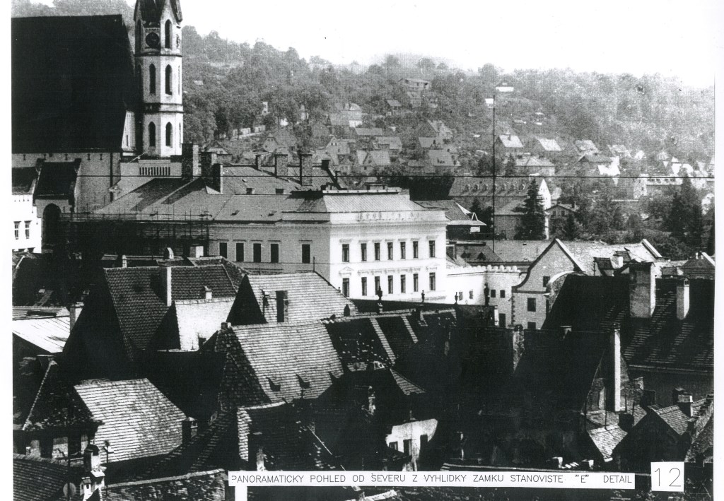 Krumlov, který snad i svůj název odvozuje od meandru Vltavy, protékající městem " v křivém toku " je neopakovatelným urbanistickým celkem, neuvěřitelně dochovaným. Zbylé plochy v těsných pohledových návaznostech na historické centrum byly předmětem zájmu města o využití těchto jeho pozemků. Tak tomu bylo i s prostorem tak zvaného pátého meandru, kde zastupitelstvo chtělo velmi zajímavě experimentovat se stavebním souborem dvou separovaných funkcí – domova pro seniory a mateřskou školkou ve vzájemném vizuálním kontaktu obou provozů. Požadovaný program byl však natolik rozsáhlý, že ukázal jeho neúnosnost právě v těchto fotografických vedutách. Z programu díky tomuto elaborátu sešlo, byl realizován pouze domov pro seniory, na zcela jiném místě, jiným projektantem a ve skromnějších kapacitách – jeho řešení bylo i vysoce a oficiálně oceněno.