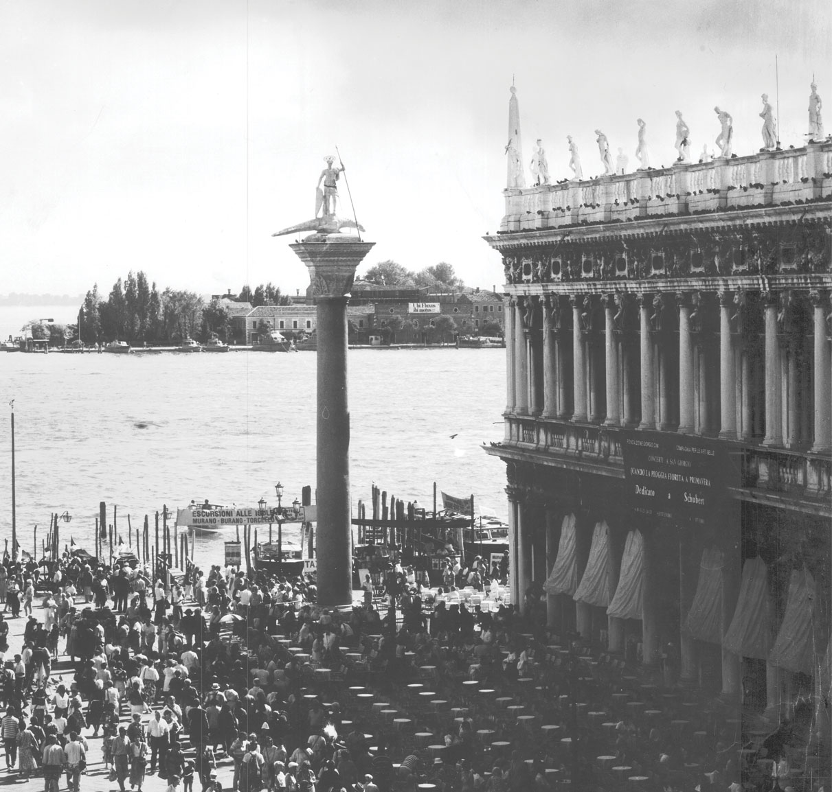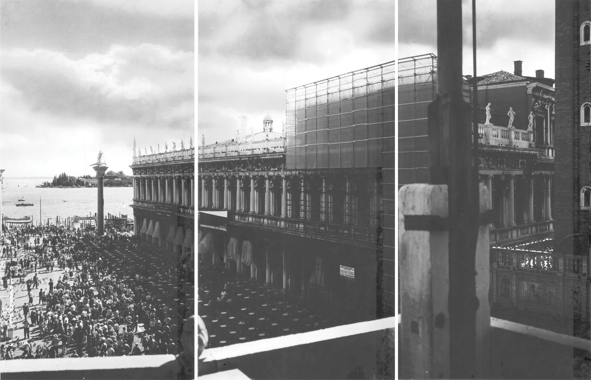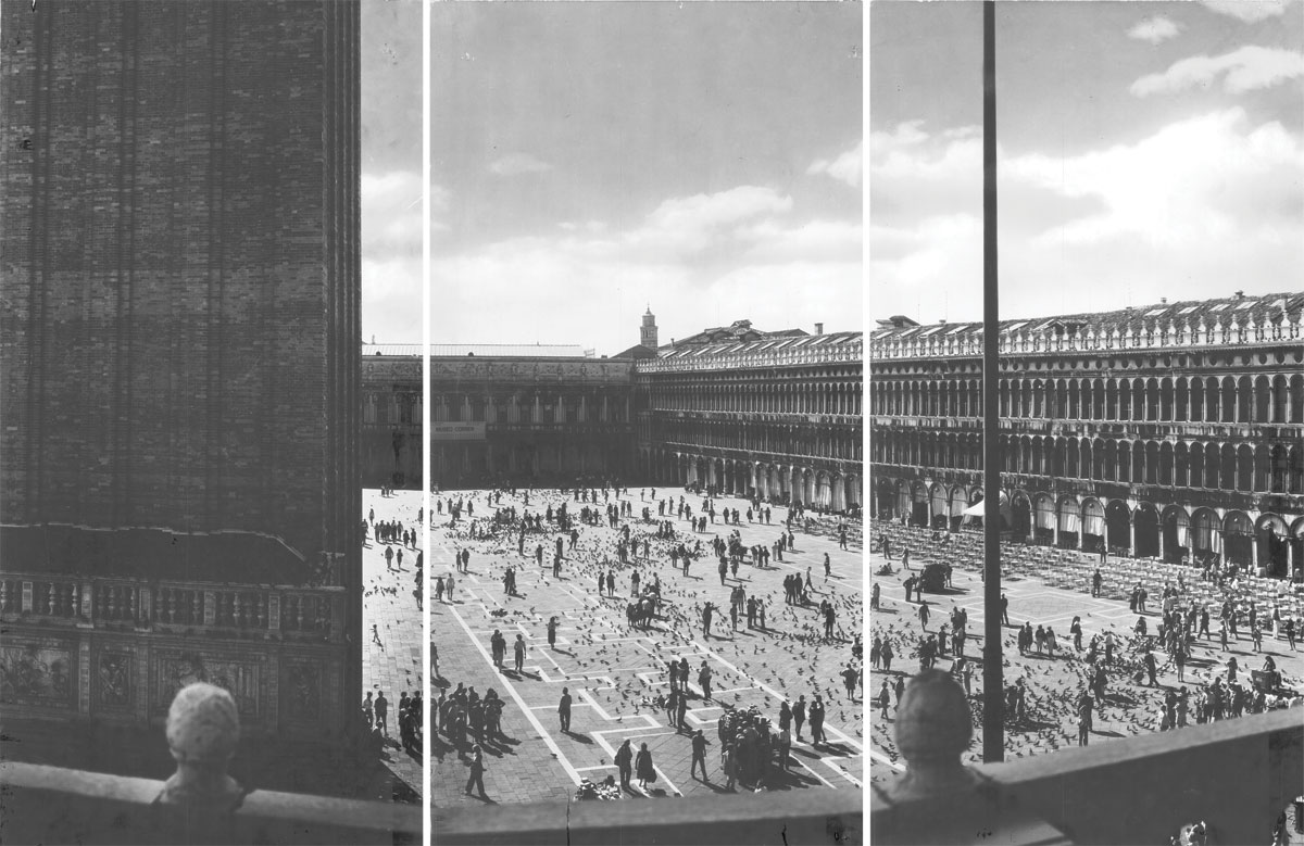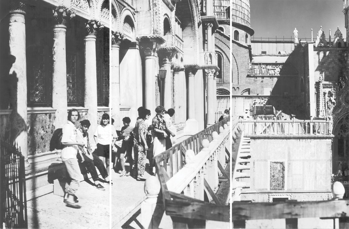 Panoramatické zobrazení piazetty mezi Dóžecím palácem a Sansoviniho knihovnou a Náměstí svatého Marka v Benátkách je jedním z těchto dochovaných případů, konkrétně z roku 1990. Moje okouzlení tímto prostorem, který jsem sice dovedl nakreslit i s jeho perspektivními klamy ale v životě jsem ho do této doby neviděl na vlastní oči, mne uchvátil natolik, že jsem se dopustil podvodu na divákovi a souvislé panorama je vytvořeno ze dvou míst, několik metrů od sebe vzdálených - na lodžii Chrámu svatého Marka. Tento klam prozrazují dva oblouky perspektivní panoramatické zkratky, návaznost obou obrazů je – snad - nepostřehnutelná. bch