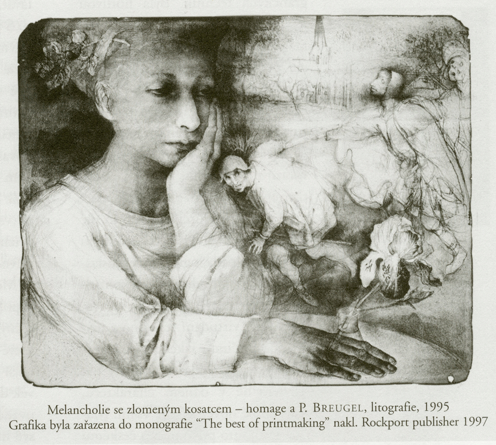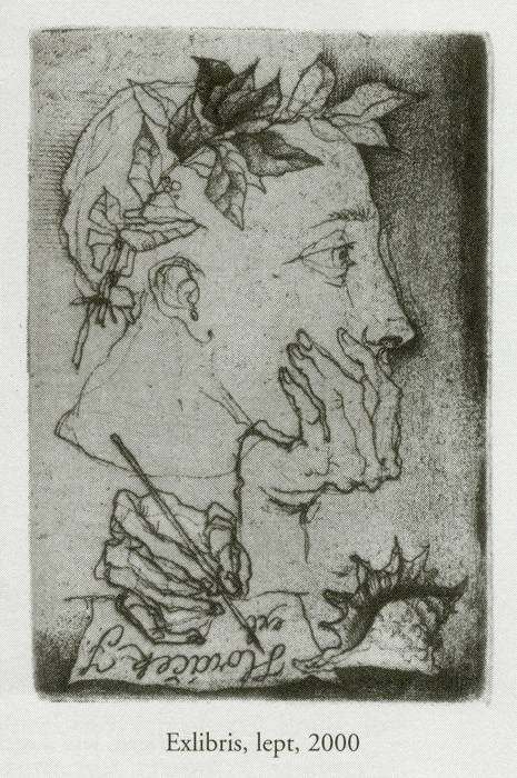 a to již dlouho. Sbíral její ranné grafiky mnoho let a sbírá všechny její další proměny až po současnou tvorbu. V tomto roce tomu však bude patnáct let, kdy u ní pan inženýr objednal prvé EX LIBRIS. Tato grafika s názvem „Poslední píseň krysaře“ byla i první Marininou zakázkou v této tak vyhraněné oblasti grafické tvorby. Při tak bohatém zastoupení EX LIBRIS v jejím celkovém tvůrčím repertoáru to lze právem považovat za významný mezník. I přes všechny tyto skutečnosti se tito dva vyjímeční lidé během svých setkání mnohokrát na řadě věcí „neshodnou“. Pan inženýr je však velmi vyrovnaný, taktní a společenský muž a tak hroty jakékoliv discrepance čím dál tím úspěšněji otupuje.