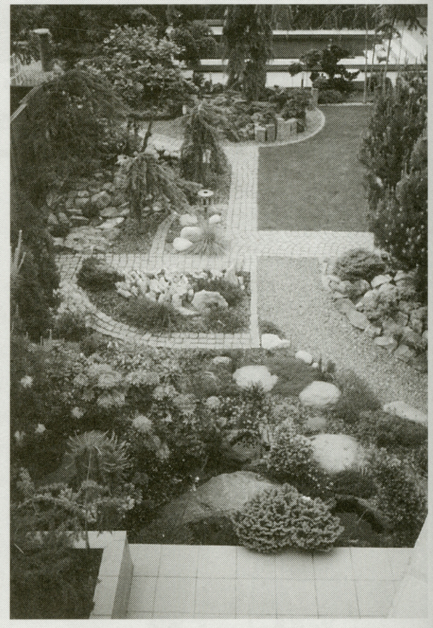 Jejím osobním relaxem a dobrodružstvím zároveň je tvůrčí péče o zahradu, která vznikla na původně zcela neutěšeném pozemku.. S jejím konceptem jsme společně začínali. Bylo to krásné, dramatické a samozřejmě naprosto konfliktní tvoření. Tvrdě diskutovaná řešení jsme ani nekreslili, modelovali jsme je přímo v reálu. Místo několika čar na papíře bylo nutno přenést metrické centy kamení. Pro architekta je takováto demonstrace myšlenky výrazem utrpení i láskyplného pochopení zároveň Jinak to asi skutečně nešlo, nad papírem bychom se asi nikdy neshodli.. Tvary jednotlivých celků se staly konfliktem mezi empirickou a geometrickou křivkou. Velmi byla zvažována i třetí dimenze – růstu jednotlivých soliterů, která již dnes začíná být aktuální. Odměna současného úžasného výrazu celé zahrady i jejího detailu je výsledkem její nadšené tvůrčí práce s živým materiálem. Prostor a jeho samostatné „salony“ dokáže souvisle koncipovat objemově, materiálově i barevně. Do toho ještě vkládá svůj silný časový fenomén a po zkušenosti několika let rozmísťuje temporálně kvetoucí rostliny do jednotlivých posloupných kompozic zahrady tak, aby se celek nikdy nestal hluchým místem. Zahrada, do které Marina před lety s tvůrčím nadšením vstoupila, je předmětem obdivu všech překvapených návštěvníků. Naprosto navazuje na celkový koncept interieru domu, je jeho pokračováním za otevíratelnou skleněnou stěnou. S interierem je propojena shodnými materiály, promítajícími se do dlažeb, kovových konstrukcí, do osvětlení a barevnosti