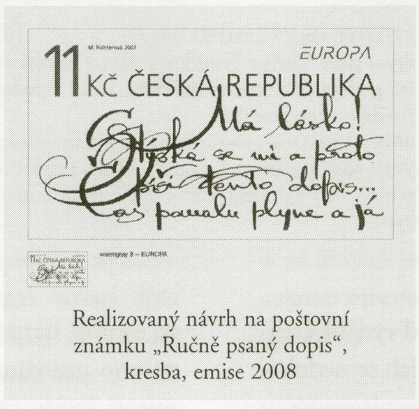 Snaží se proniknout do slovesné tvorby v řeči východních národů, směrem na západ je zcela pohlcena tancem, euforicky i tragicky prožitým. Obdivuji její krásný, až divadelně dynamický rukopis. Uplatnila jej i na své první vydané poštovní známce – Ručně psaný dopis. Tato grafika nejmenšího formátu, mezi které poštovní známka jistě patří, dostala tímto artefaktem tu nejlogičtější, při tom však i nejemotivnější symboliku zadaného tématu. Význam dvou prvých slov v českém jazyce, kterými text na známce začíná – „Má lásko …“ bude zřejmě srozumitelný nebo alespoň významově odhadnutelný pro většinu adresátů jak v Evropské unii, tak i mnohde ve světě.