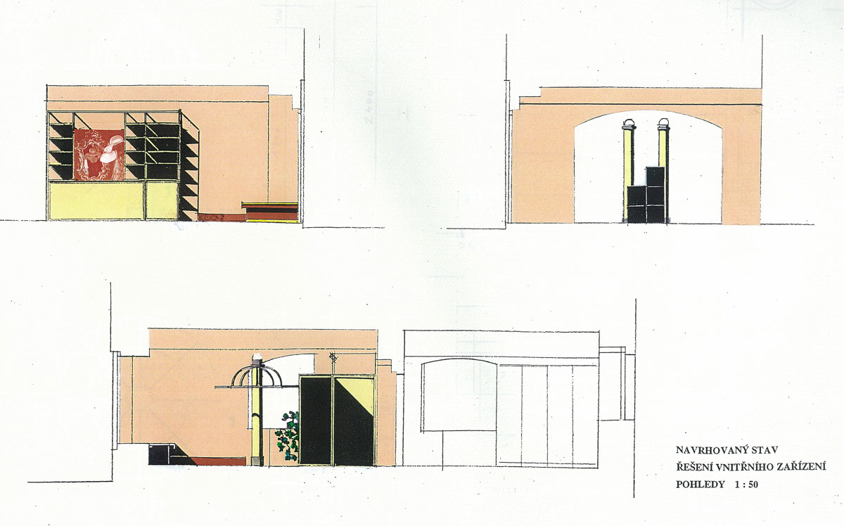 Na Říčanském hlavním náměstí, v prostorách bývalé cukrárny, byl realizován projekt výlučné obchodní jednotky, která si kladla ambice i na činnost výstavní, koncertní a činnost hostitelskou v oblasti tehdy módních čajoven. Interier salonu doplňovaly velkoplošné figurální kompozice módních kreseb Magdy Janečkové – Křesťanové a celý interier byl koncipován jako originál bez širšího užití seriových prvků. Úspěšně působil několik let se svým doprovodným programem, mnoha módními přehlídkami a autorskými výstavami s velkoryse pojatými vernisážemi, než jeho existenci ukončila konkurence stánkového prodeje. Jeho produkty byly tehdy příliš lákavým překvapením široké veřejnosti. Boutique GALA a jeho program se minul časem i místem, bohužel ve chvatu a objemu ostatní práce byla vyhotovena jen sporá dokumentace realizace, dnes již nedoplnitelná, stejně jako u řady dalších projektů.