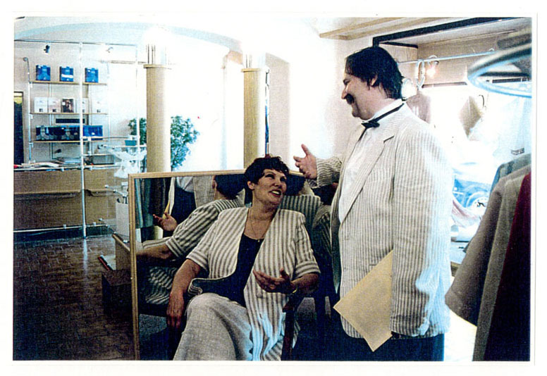 Magdu Křesťanovou, tehdy snad ještě Magdu Janečkovou, jsem si dovolil oslovit ke spolupráci po její habilitační docentské přednášce. Na ní předvedla pro mne neuvěřitelnou ferii figurálních kreseb. Pokud by byly uveřejněny v jakémkoliv módním časopise, určitě bych ho koupil a kresby nějakým způsobem zhodnotil. Osud napověděl, že nic takového činit nemusím, protože Magda přijala moji nabídku ke spolupráci na tomto módním salonu. Se vší úctou k Říčanům - v tehdejší době, kdy tato dnes svébytná prestižní lokalita má již svůj kredit, nemohla tento počin tehdy unést v oblasti poptávky. Dnes by tomu bylo určitě jinak. Autorka vytvořila dvě kresby. Soliterní figuru v krásné dynamické tříčtvrtce a figurální kompozici. Ženy na nich zobrazené postrádaly jakékoliv laciné atributy ženství – jako náročné účesy či jiný feminní dekor. Byly svým způsobem drsné, s definovaným tvarem lebky, s afektovanými výrazy v obličejích. Jejich oděv byl pochopitelně sporý a nadčasový zároveň. Tím módnímu salonu dávaly naprostou svobodu v jeho směřování. Autorka zvolila i i zcela novou techniku výtvarného projevu. Svoji kresbu dala k dispozici tehdy naprosto novým strojům, které byly schopny vytvářet velkoplošné xeroxové kopie. Její rukopis v mnohanásobném zvětšení získal novou emoci ve výrazu. Do těchto snad až technicistních výstupů se Magda nebála vstoupit s pastelem a jeho atakující barevností. V glosách našich rozhovorů někdy zapochybovala, jestli je takový postup s použitím repro techniky vůbec etický. K takové otázce nemohu být soudcem, ale jejími díly jsem se v tomto interieru velmi pyšnil. Jistě by si ani paní Magda takové otázky nekladla, kdyby věděla, kam se hranice této tak zvané etiky posunou v prvním desetiletí jednadvacátého století. Její figury v životní velikosti ve své době dominovaly tomuto salonu. Byly dokladem vrcholné úrovně figurální kresby na pražské Umprum, která dodnes i v daleko širších srovnáních než tehdy sbírá své ovace. bch