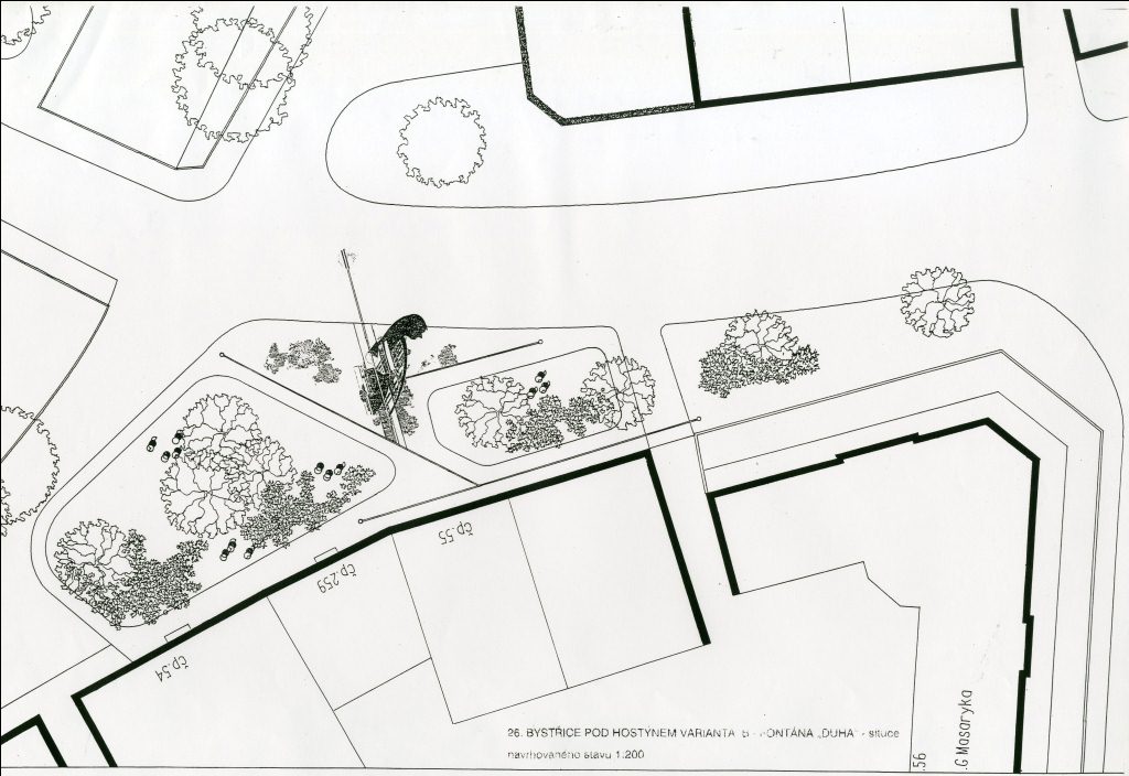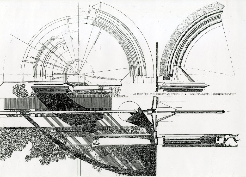 Druhá nerealizovaná alternativa fontány, založená na reflexi vodního horizontálního filmu a segmentové vertikální vodní clony . Město několikráte měnilo své rozhodnutí mezi těmito návrhy, nakonec zvítězila Duha i s ohledem na snažší technologická zařízení.