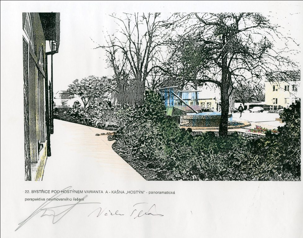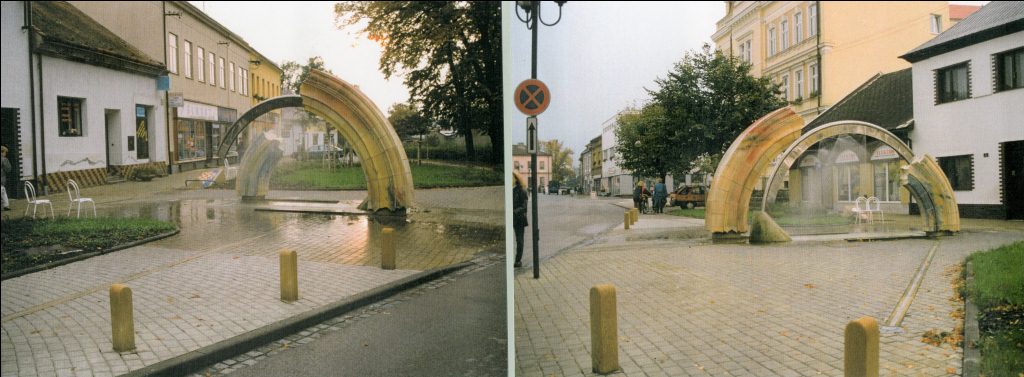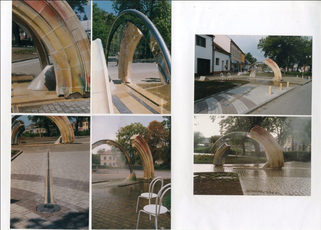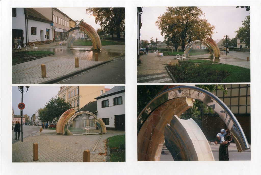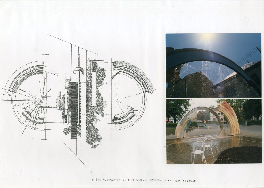 Dynamicky se rozvíjející, byť nevelké město Bystřice pod Hostýnem se pod vedením starosty Hejcmana pouštělo do řady ambiciozních projektů. Jedním z nich bylo i řešení vstupních partií do centra, o které byl požádán BCH a k danému úkolu přizval již po několikáté ke spolupráci kolegu pedagoga VŠUP, vedoucího atelieru keramiky a porcelánu, prof. ak. soch. Václava Šeráka. Výsledkem byla fontána, brána, nebeská duha, ztvárněná v keramice, nerezu a kameni se světelnými a fyzikálními efekty. Byla prezentována v místním i odborném tisku celostátního významu, stala se předmětem zájmu široké i odborné veřejnosti, a zapůsobila svojí kontraverzností. Ideu díla měli autoři možnost obhájit v tehdejším Atelieru ČT. Je pro ně poctou, že i výtvarně konzervativní vedení města tento realizovaný projekt vzalo za svoji chloubu a uplatňovalo jej v řadě ambiciozních projektů. Je pro ně poctou, že se fontána Duha stala nepsaným symbolem města, vedle majestátného Hostýna, Thonetových výrobků i dalších artefaktů. Figuruje v pohlednicích, návštěvníci se s ní fotografují v kontextu s hlavními městskými siluetami. Byla publikována ve světových encyklopediích, například ve sborníku světové keramiky, vydaném v Číně a v dalším, vydaném v Austrálii. Možná se dočká i svého původního záměru – vytvoření kulturně společenského prostředí ve svém bezprostředním okolí, s vůní kávy, delikatessů a hudebních tónů. Zatím je jen místem schůzek. Říká se někdy a někým, že se sejdeme u "myčky aut" – i to může v dnešním spotřebitelském prostředí evokovat keramická ferie nebeského spektra. I to je názor. Fontána Duha však již působí více jak deset let. Nepoškozená, fungující, ve stále doplňovaném a především dotvářeném městském prostředí. Snaží se o symbol nadčasový. Nemá však obavu připomenout i symbol Moravy a svého města. Tyto principy nejsou v antagonistickém vztahu. Jsou spojeny laserovými paprsky, sledujícími své nerezové lamely. Vedle mnoha počinů v tomto městě působí zcela přirozeně.