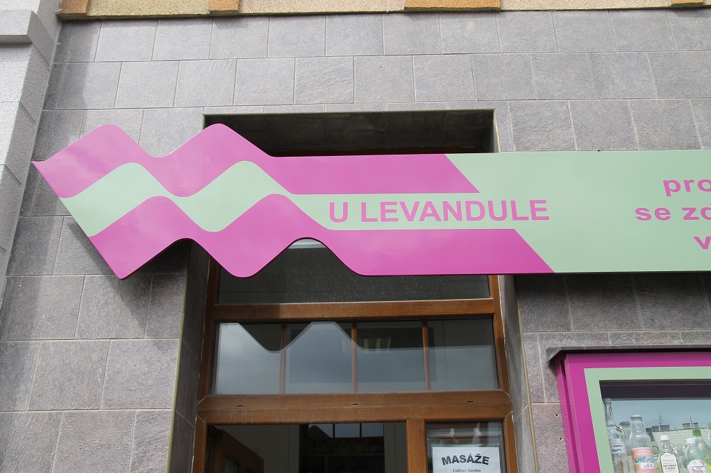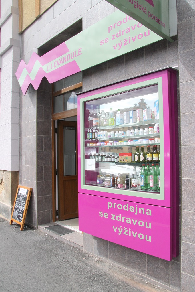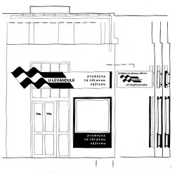 Parter sousedního domu začíná ožívat obchodními aktivitami, dotýkajícími se prostorově i řešeného domu. Zároveň je připraven návrh barevnosti sousedního domu vpravo, který by měl vytvořit návaznou kompozici s domem řešeným.