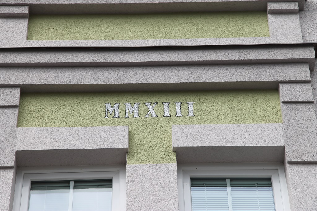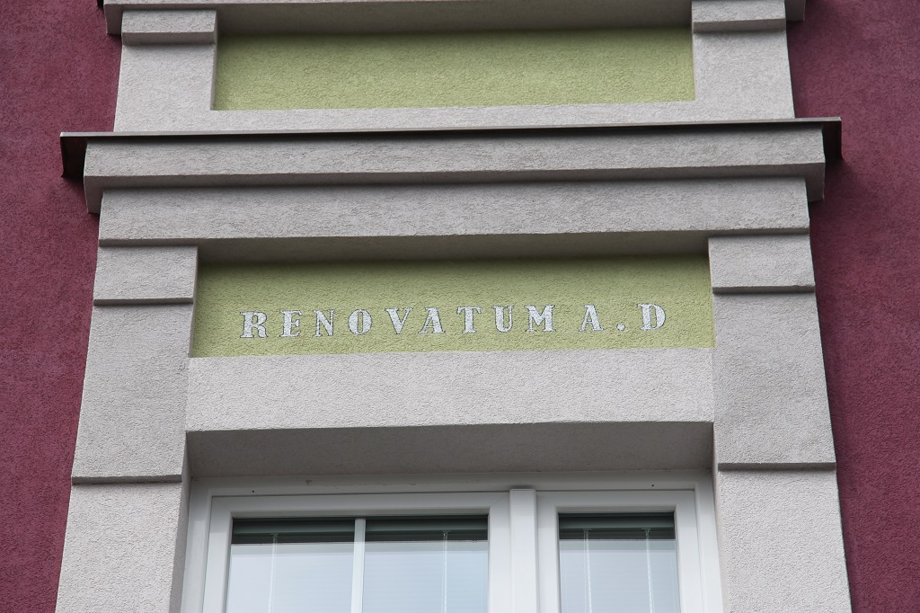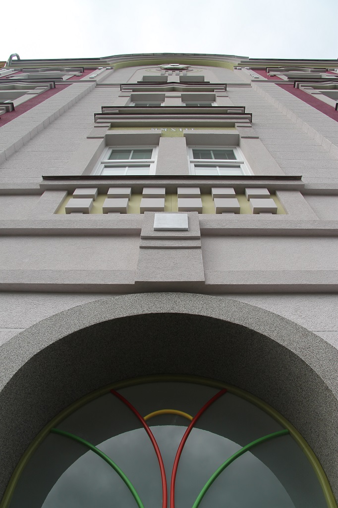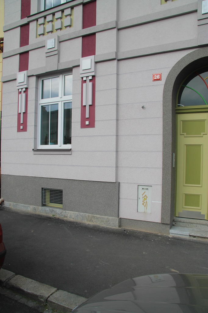 V druhé polovině roku 2014 byly dokončeny i poslední úpravy soklu domu - materiálově shodně v návaznosti na uliční vstupní portál.