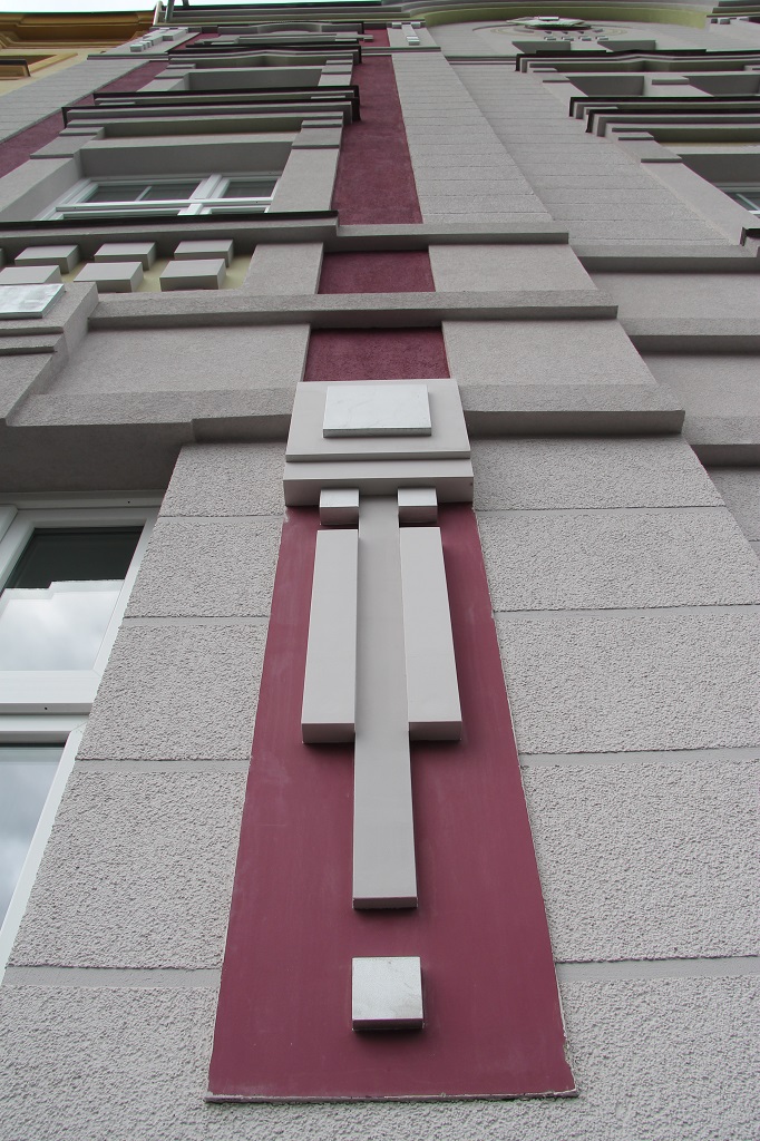 V návaznosti na první dům, jehož studie byla vytvořena před více jak deseti lety, pokračovala v roce 2013 práce na sousedním domě – jeho uličním průčelí a repassi společných prostor. S ohledem na požadované zateplení obou průčelí této stavby v proluce bylo třeba původní, již zcela devastovanou uliční frontu nahradit volnou reminiscencí původního stavu.