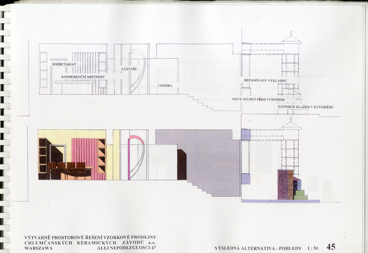 Chlumčanské keramické závody byly majoritním dovozcem stavební keramiky do Polska. Dodavatelsko odběratelské vztahy potřebovaly instalaci pevné základny na polském území, nejlépe v hlavním městě Varšavě. V kontaktu s městským centrem byly vyčleněny rozsáhlé prostory v jedné z hlavních tepen nové Varšavy - Aleji Nepodleglosci a po oslovení BCH byl zpracován projekt obchodní výsadky s širokým zázemím. V následující realizaci vedle tradičních vzorníků dlažeb, na míru zpracovaných přímo CHKZ , se v realizované výsadce uplatnily typické výtvarné atributy vysílající země. Základním motivem bylo vytvořit z dlažby exponát, nikoliv prostředek interieru výstavní síně. S ohledem na svoji atraktivnost se tyto prostory staly i dějištěm mnoha nadnárodních oborových sympozií. Partnery v jednání byli obchodní ředitel CHKZ Jaroslav Sysel a zástupce managementu Jaroslav Hynek. Realizaci provedly převážně české firmy, interiérovou část osvědčené EXPO PARTNERS BLOVICE.