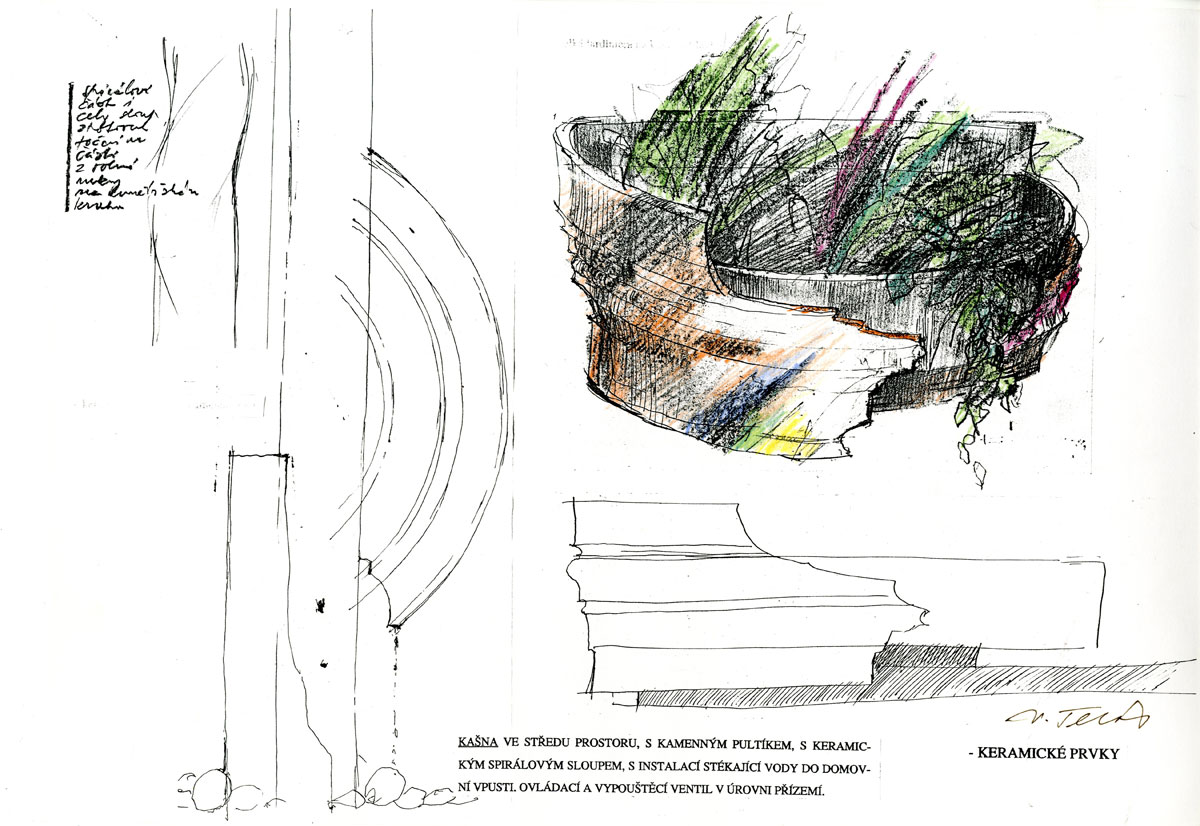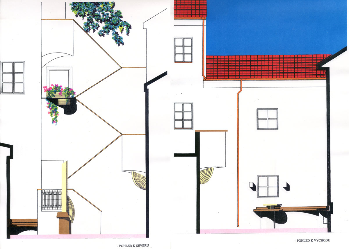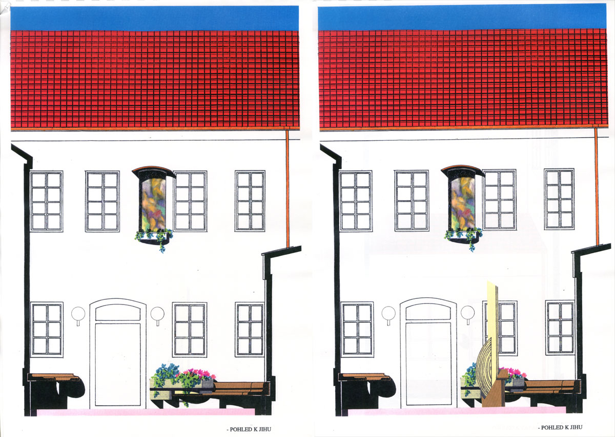 V ulici Úvoz je jistě řada krásných domů, jejich dvorů, strmě šplhajících k hradčanskému masivu. Jedním z nich je i dům, který se stal sídlem redakce časopisu Xantypa. Jeho úprava byla již v běhu, kdy BCH byl osloven o jeho dotvoření. Krásný domovní dvůr, s ohledem na terénní konfiguraci v úrovni patra hlavního reprezentačního sálu, byl hlavním předmětem řešení. Nová kamenná dlažba, kamenné lavice měkkých tvarů, schodiště ve svahu, řešení fasády dvorního traktu s instalací výtvarného díla Dobroslava Halaty , osvětlení a keramické prvky, navržené profesorem Václavem Šerákem. Náročné kamenické práce byly stěžejním úkolem a požadovaným výlučným řešením, které BCH volil touto formou. Bylo akceptováno a realizováno. Představy objednavatele o dalších úpravách objektu nestály s představami BCH o dokončení areálu na protilehlých březích. Nedošlo však k obchodní shodě a proto nebyly tyto vztahy dále rozvíjeny. Řešení dvora s vyjímečnou kamenickou prací však zůstává. Navržené doprovodné keramické prvky byly ve svém rozsahu omezeny, malířská exibice byla potlačena a nahrazena švabachovým písmem. Z řešení zůstala především architektura, jejíž skvostné provedení kamenického řemesla dodala majoritně firma Jež. Shodou náhod prostřednictvím smlouvy o dílo s jedním ze studentů VŠUP, který právě u BCH absolvoval zkoušku z discipliny.