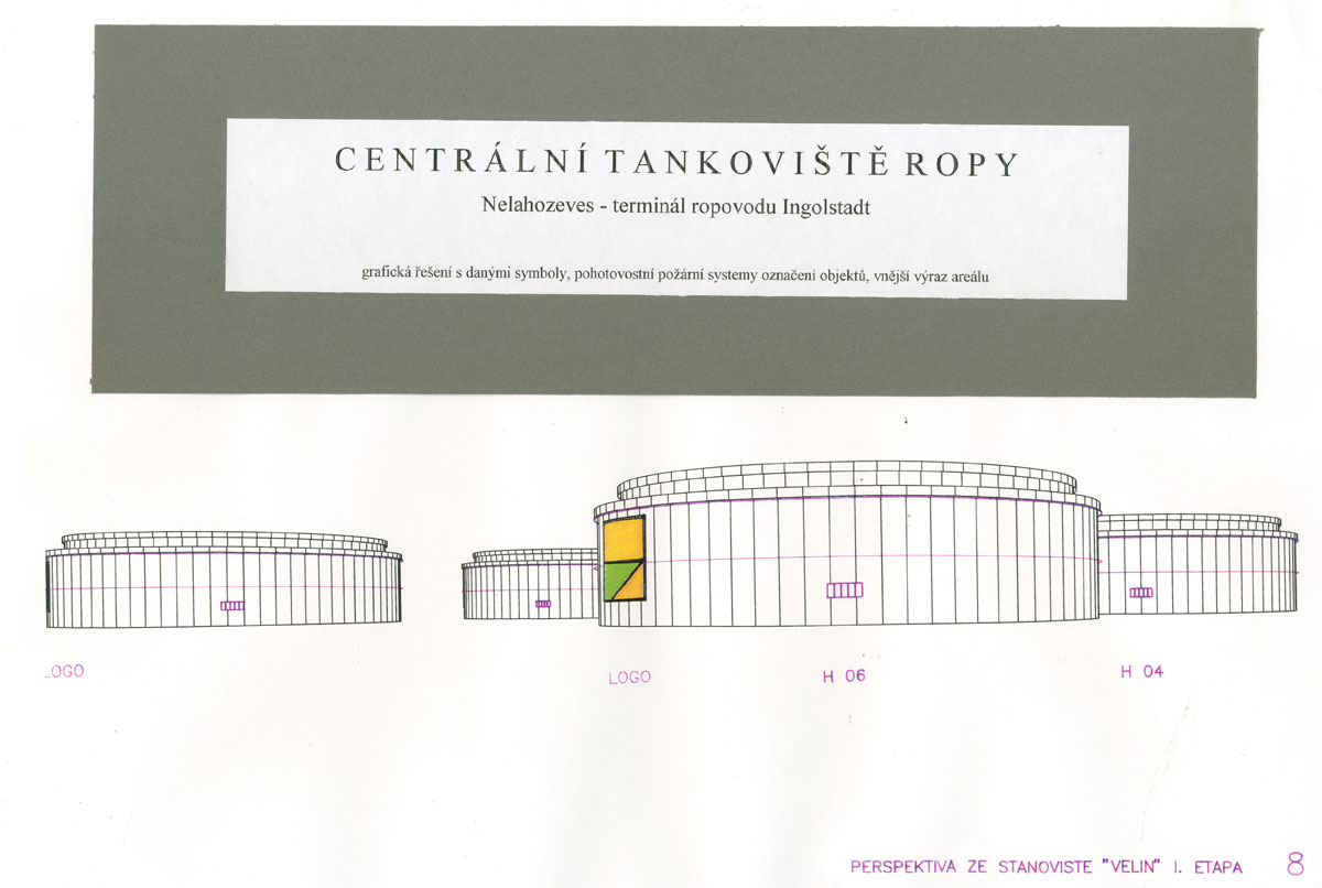 Název ropovodu a jeho terminálu u Nelahozevsi pojmenoval i nově vzniklou lokalitu. Zadaný úkol instalace loga společnosti a především strategické označení jednotlivých nádrží suroviny nese především technicko – strategické aspekty řešení. Měnící se velikosti cifer na jednotlivých nádržích popíraly perspektivu zmenšování objemů do prostoru a tedy i orientace záchranných sborů v případech mimořádných událostí byla tímto ulehčena. Velkorysý areál nejvyššího strategicko energetického významu oslovuje svým monumentalismem existence v měřítcích naší krajiny a její rozlohy. Řešení bylo realizováno.