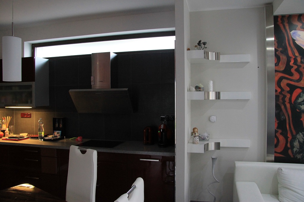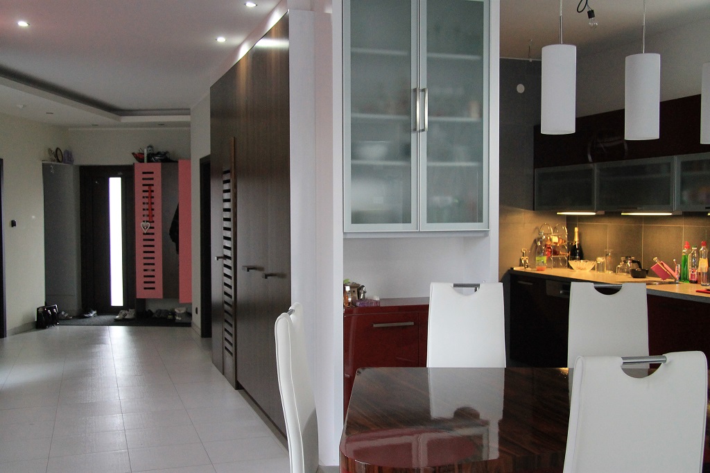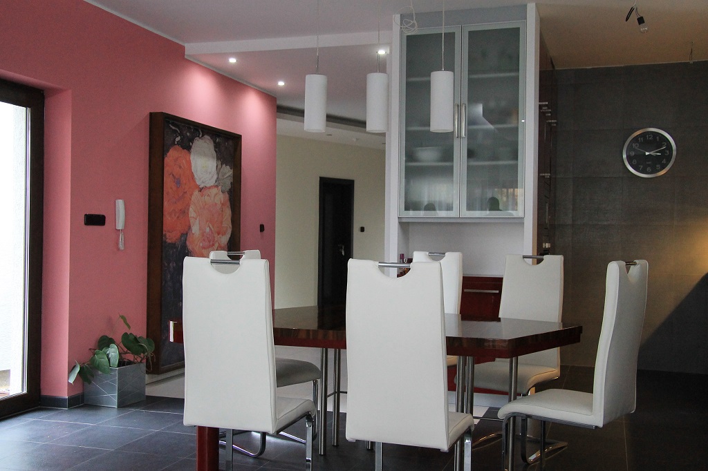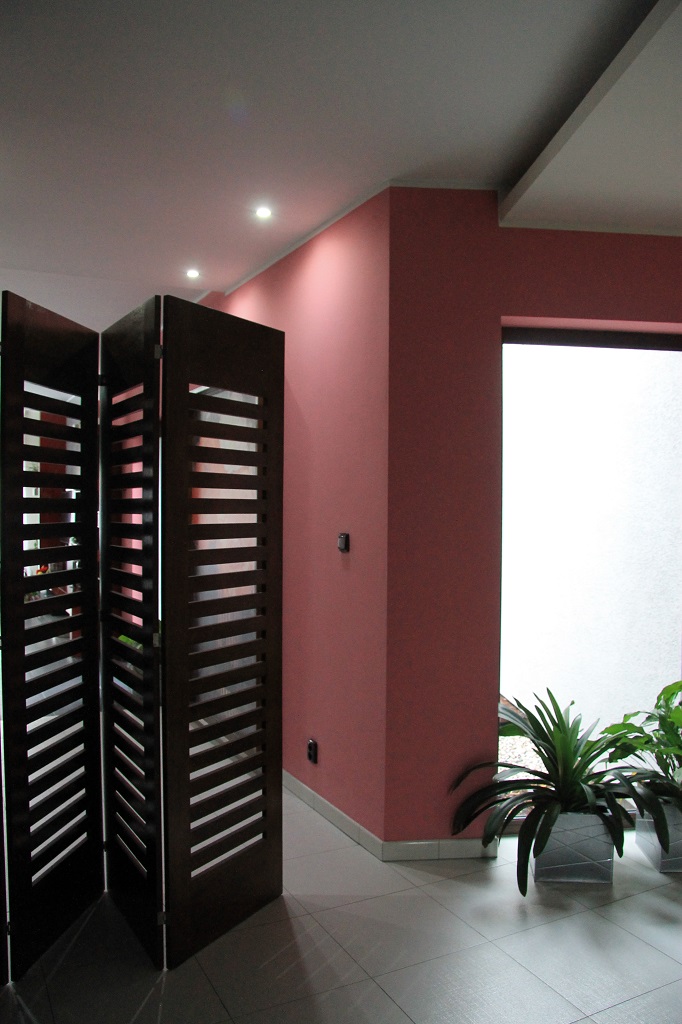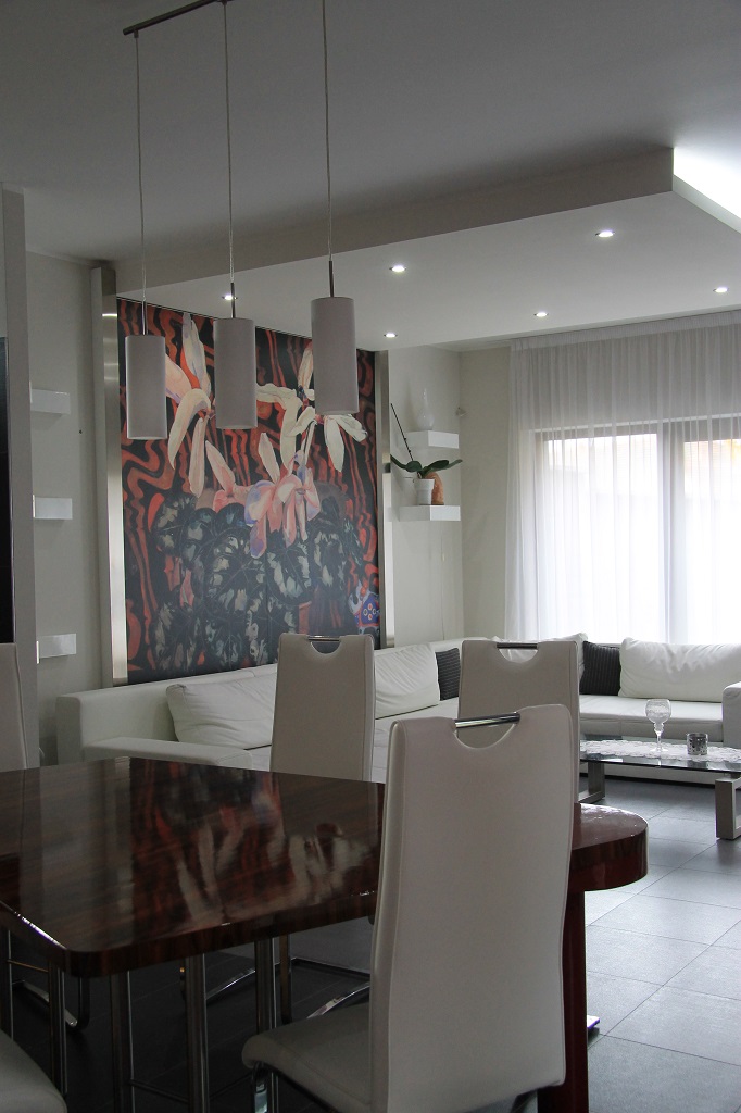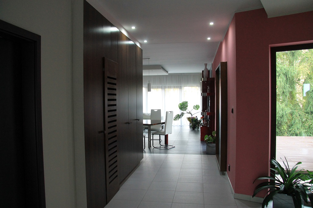 Byl jsem osloven ve věci vytvoření interieru do zcela nového rodinného domu . Perfektní koncept, zpracovaný architektonickou kanceláří, reagoval bravurně na vlastní pozemek – jeho výškopis, zeleň i stávající zástavbu, okolí i nevlídnou blízkost frekventované komunikace. Řešení dispozice reagovalo i na tehdy pouze předpokládaný vznik rodiny, ekonomické otázky, filozofii klientky a jejího vztahu k bezprostředním sousedům na pozemku, jejího profesního směřování. I když nebylo ve stavební realizaci dodrženo vše stoprocentně a některé aktuální drobné, kvalitě neškodné úpravy požadovala i samotná klientka, byla tato úloha pro mne výzvou k maximálnímu respektu k daným výchozím hodnotám.