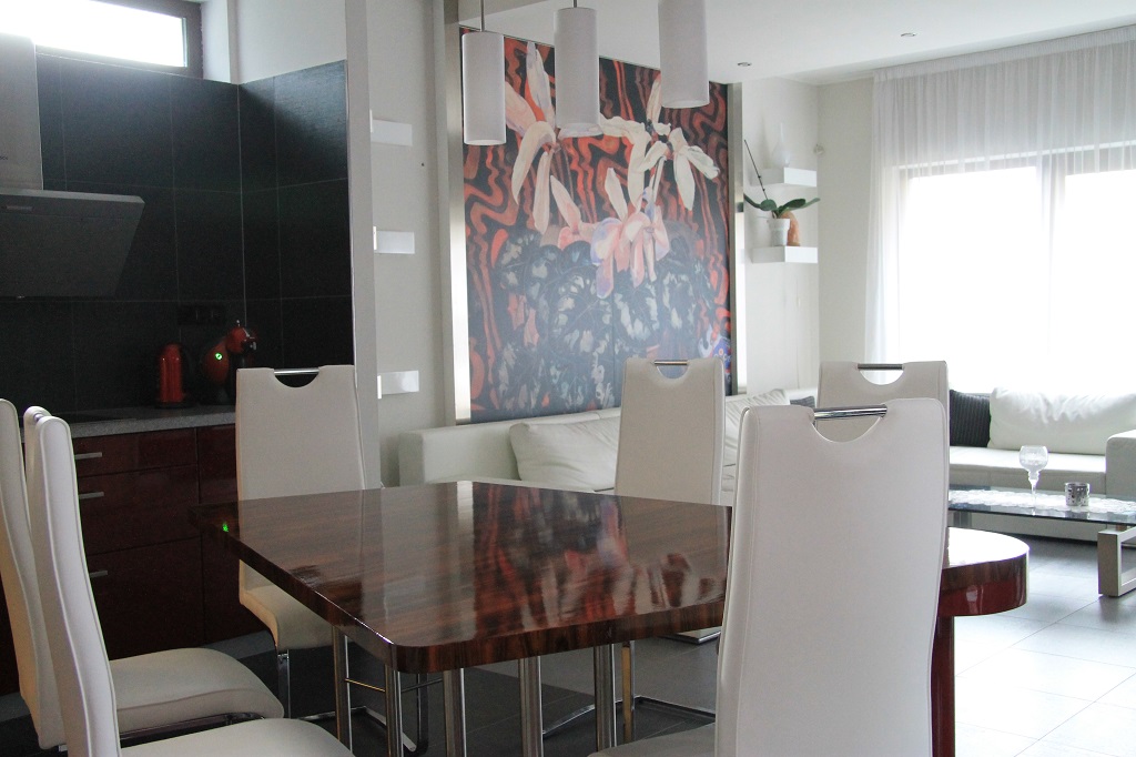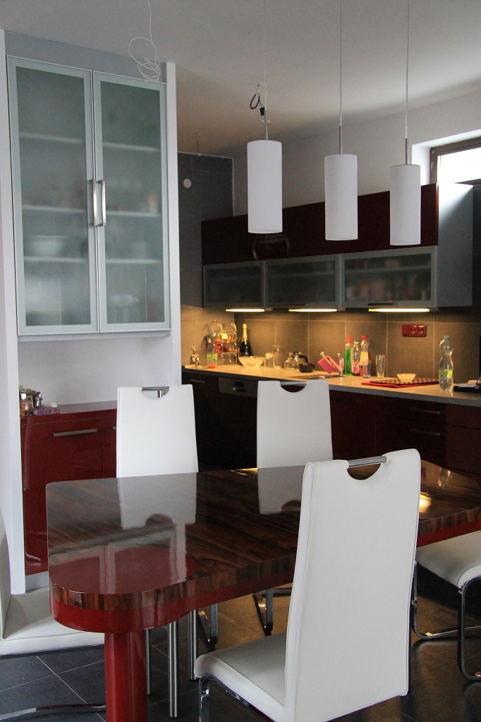Za provizorní považuji svítidlo v centru dispozice nad jídelním stolem, které by mělo vyjádřit mnohem vyšší ambice na svoji důležitou roli.