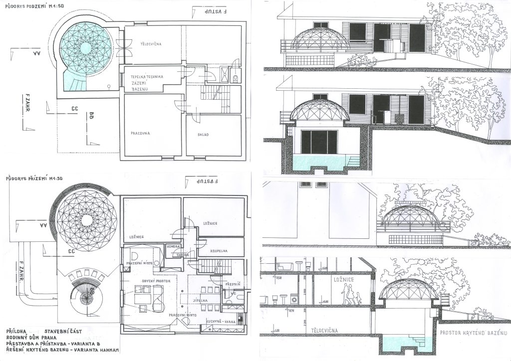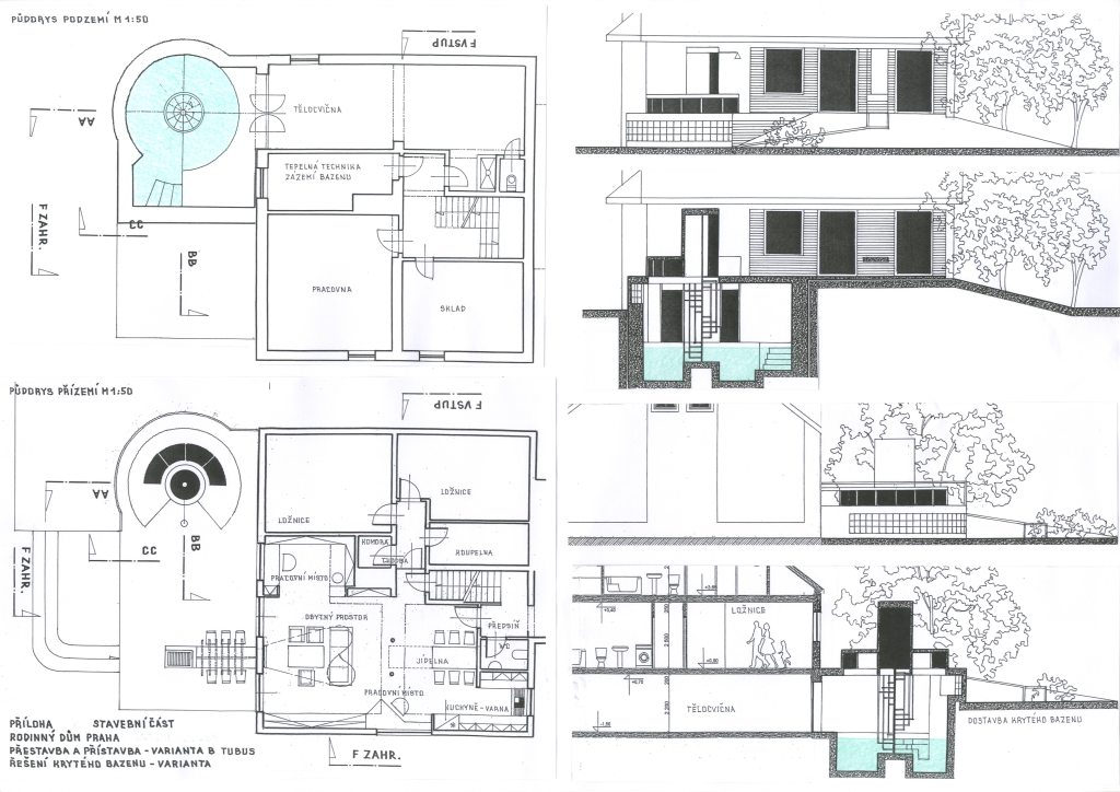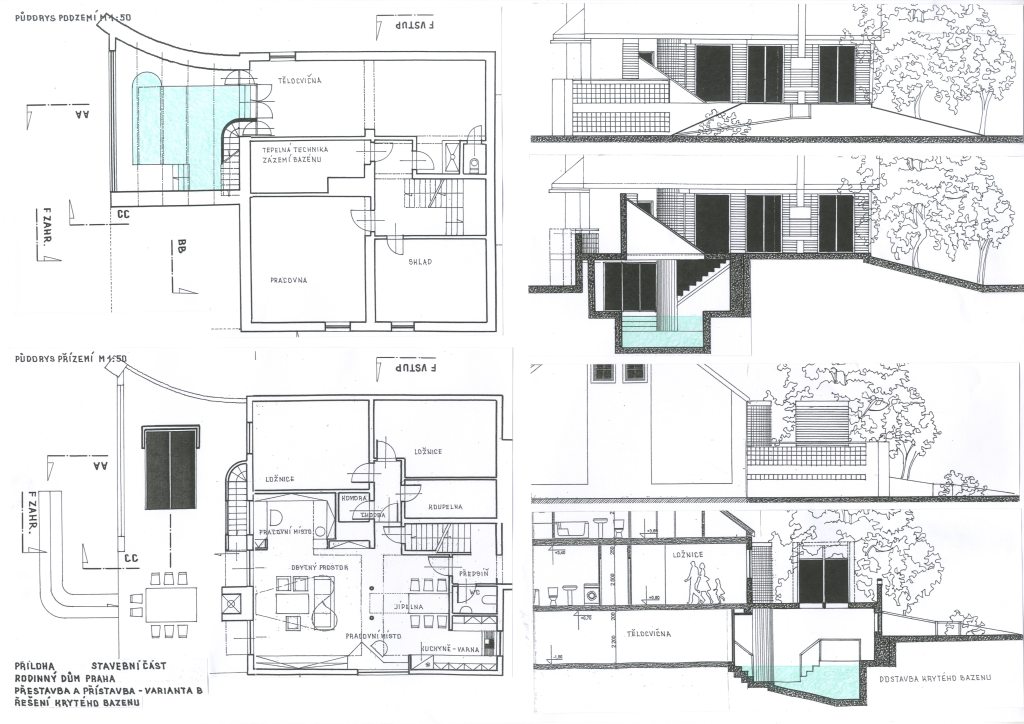Rodinný dům ČČ je původně skupinou několika objektů, stavebně zcelených v jedinou dispozici se separovanými soběstačnými bytovými jednotkami generačního bydlení. BCH byl přizván k řešení prostor rodičů , kde se úvodně počítalo i s vybudováním malého krytého relaxačního bazenu v návaznosti na tělocvičnu v podzemí. Po výběru z alternativních studií byl zpracován projekt pro provedení stavby a návrh interieru, tvořený z individuální výroby mobiliáře a prvků antiquy z fondu stavebníků