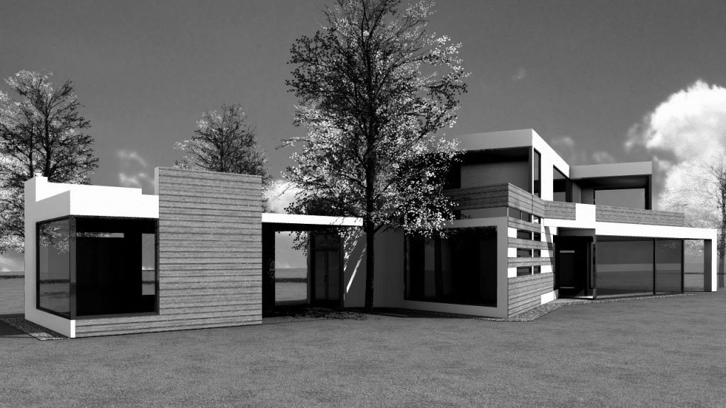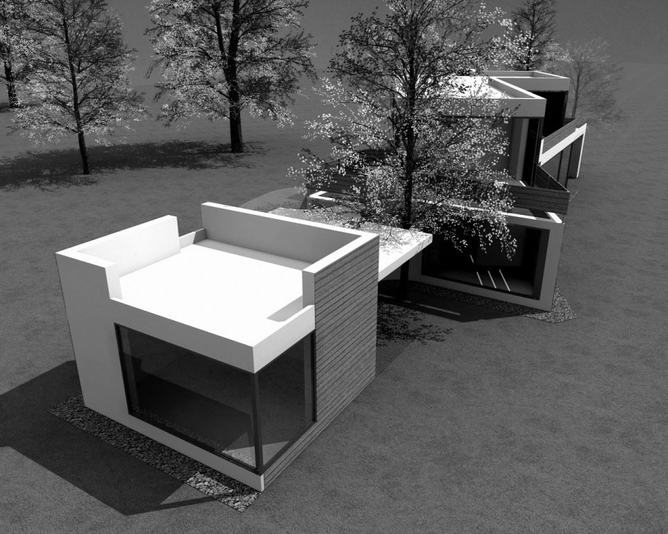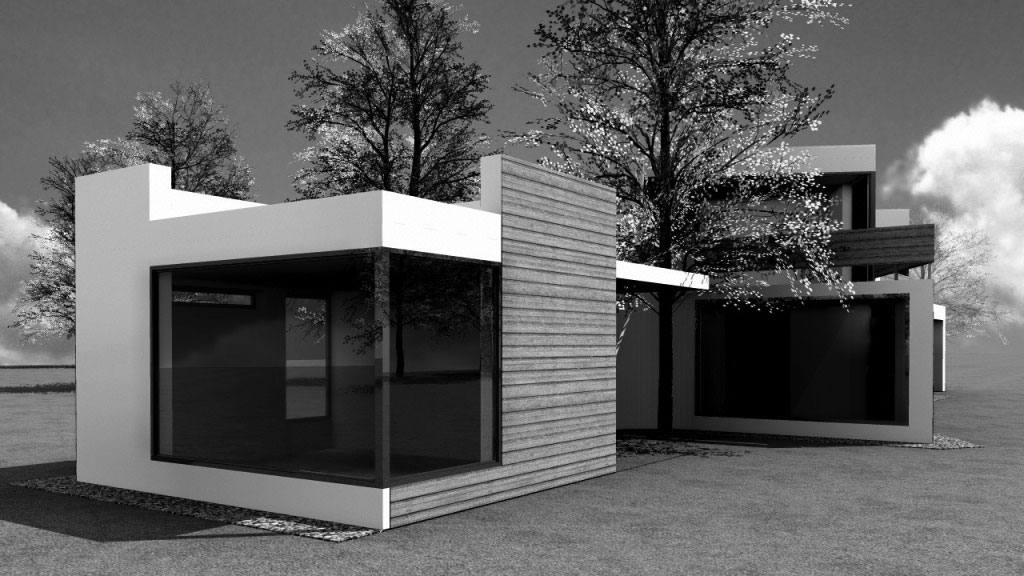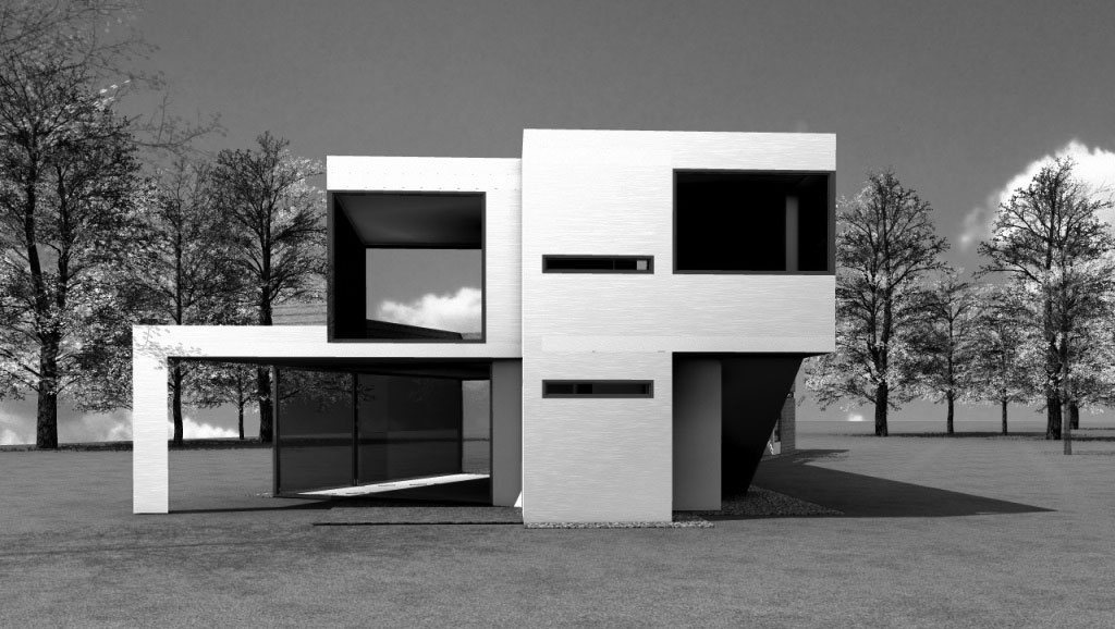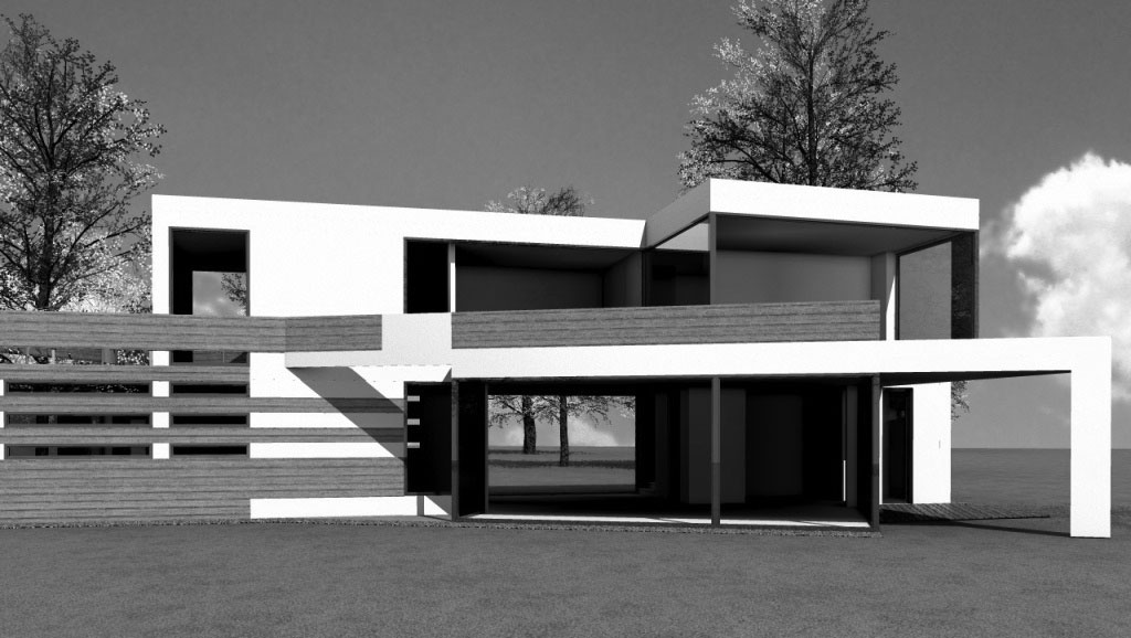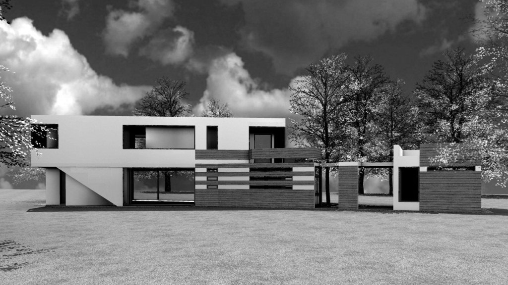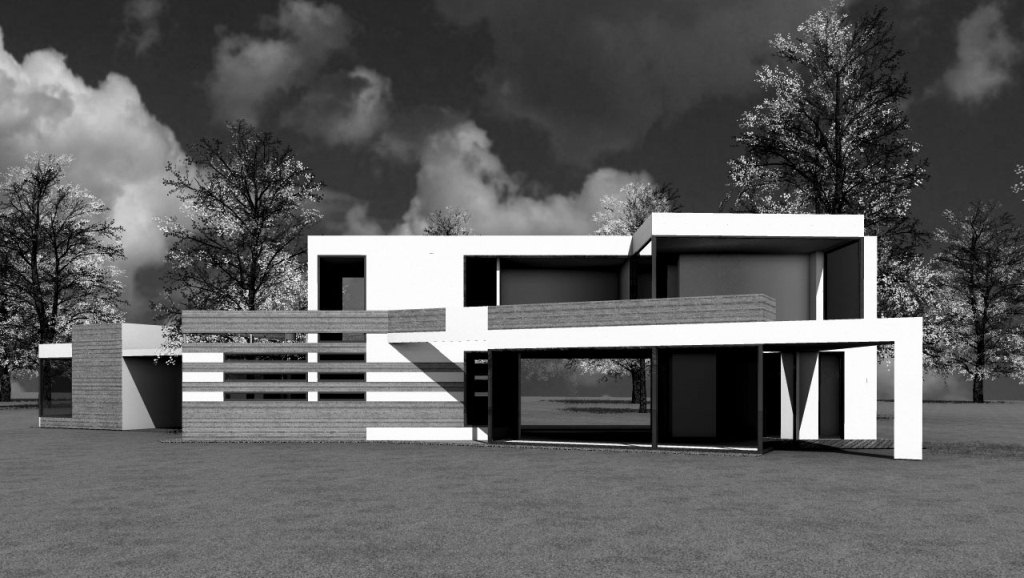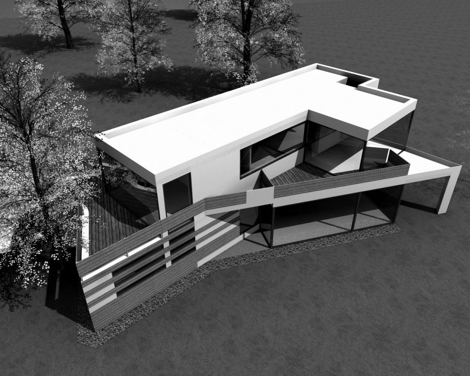 Studie pro projekt novostavby rekreačního domu byla vytvořena na pozemek, který se s ohledem na požadované odstupy měl zvětšit. S ohledem na skutečnost, že se tento záměr nepodařil, bylo od dalších projektových prací a přípravu realizace upuštěno a proto je možné uvést vedle pohledů na průčelí a perspektivních zobrazení i vnitřní dispoziční uspořádání, vytvořené pro požadovaný komfort uživatelů.