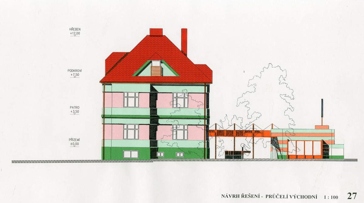 Rodinný dům NT je navrženou rekonstrukcí a úpravou sezonní letní vily pro RD stálého užívání. Pozemek je doplněn o návrh stavby firemních prostor sídla cestovní kanceláře a parterových architektur. Barevnost původní stavby se inspiruje původními koncepty, barevnost nových objektů je volena ve snaze optimismu odjezdu do slunných destinací