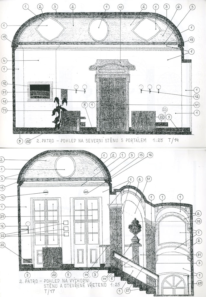 Malostranský palác již po mnohá desetiletí slouží hudební konzervatoři speciálního zaměření. Původní objednávka projektu směřovala k využití objemného prostoru krovu především pro soustředění veškerého administrativního provozu. Tento záměr, zcela oprávněně, neprošel schválením orgánů památkové péče, která jeho konstrukci chrání ve své původní podobě. Rozsah navrhovaných úprav se po řadě provedených sond vyspecifikoval k řešení regenerace pláště budovy v uličním i dvorním traktu a k řešení společných komunikačních prostor. Hlavním zásahem bylo očištění architektury od vestaveb, uvolnění zastavěného zrcadla barokního sloupového schodiště, instalace kamenických prvků do těchto nových prostor, osvětlení, interierové prvky, respektující uživatele se sníženou zrakovou schopností. Hlavní realizovaná část rekonstrukce budovy včetně nové recepce, mobiliáře a dveřních konstrukcí – přízemí bylo zničeno povodní v roce 2002.