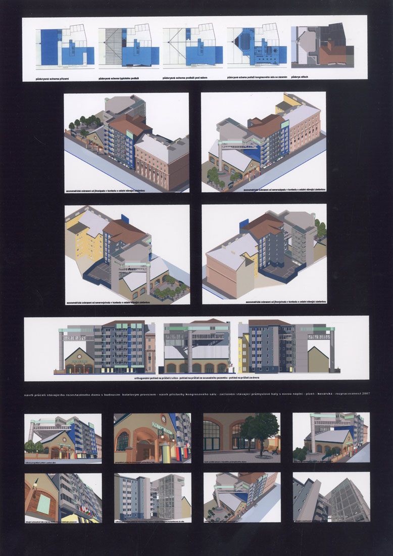 V těsné návaznosti na plzeňské městské centrum vyrostla v jedné z mnoha proluk stavba, určená původně pro účely činžovního domu. Architektura nevalné úrovně však respektovala dané objemové vztahy, splňovala legislativní podmínky dopravy v klidu parkovacími místy ve vybudovaném podzemí i v rozsáhlém dvoře. Kvalita stavebního místa byla ve vyšších podlažích umocněna exklusivními pohledy na městské centrum, bohužel však bez patřičného důrazu.